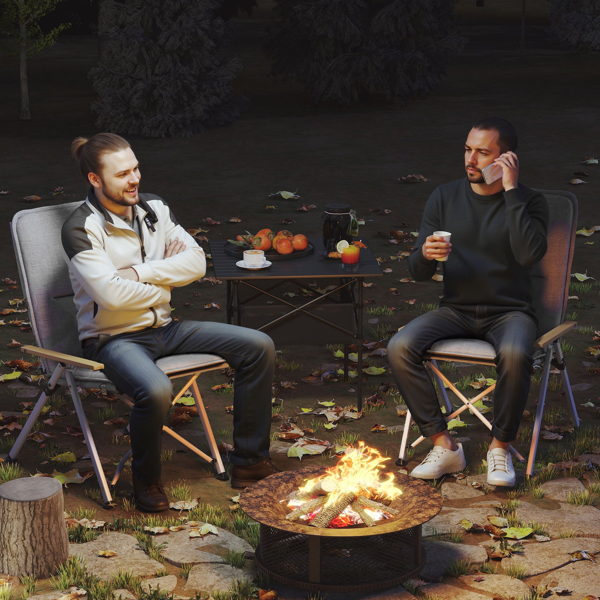 Desfrute do conforto e estilo em qualquer ambiente com este conjunto de cadeiras de campismo dobráveis. Com encosto ajustável em 4 posições, assento acolchoado e apoios de braços em madeira de faia, estas cadeiras são ideais para atividades ao ar livre.
