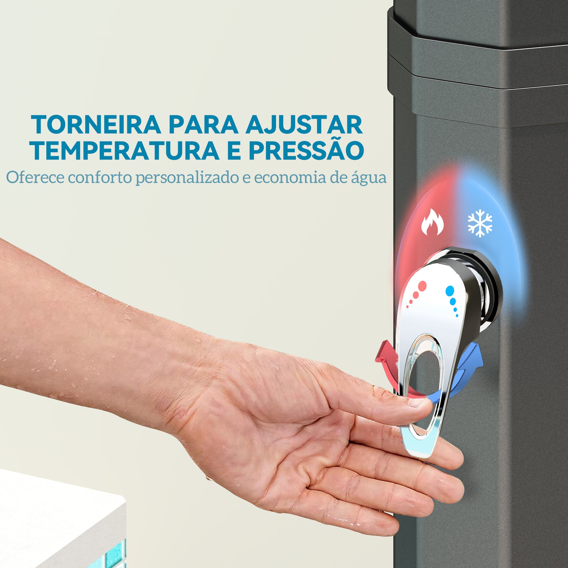 Duche de Jardim Solar Preto 73x18x217 cm - Água Quente até 55°C