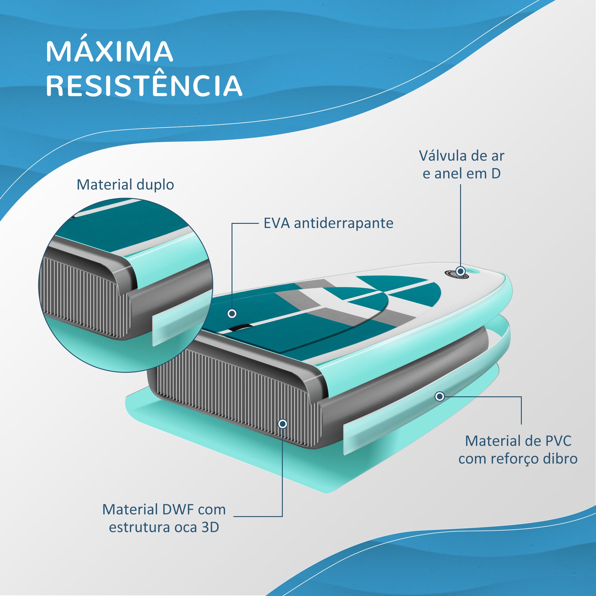 Desfrute das águas com a Prancha de Paddle Surf Inflável 320x76x15cm Azul-turquesa, uma excelente opção para os amantes de atividades aquáticas.