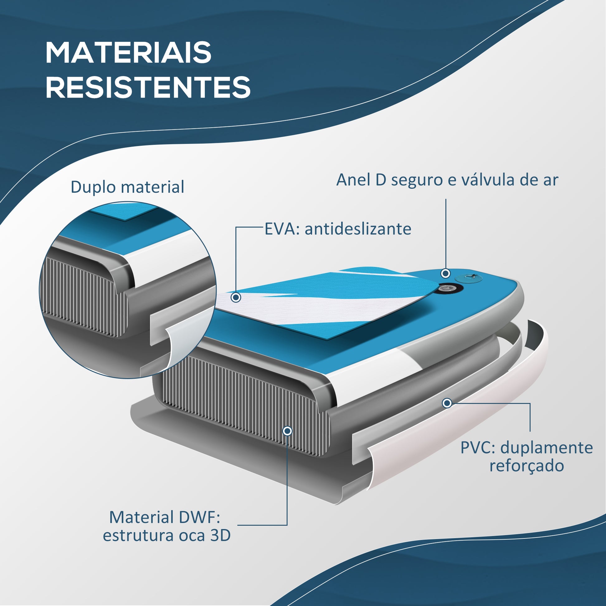 - Materiais: PVC e EVA