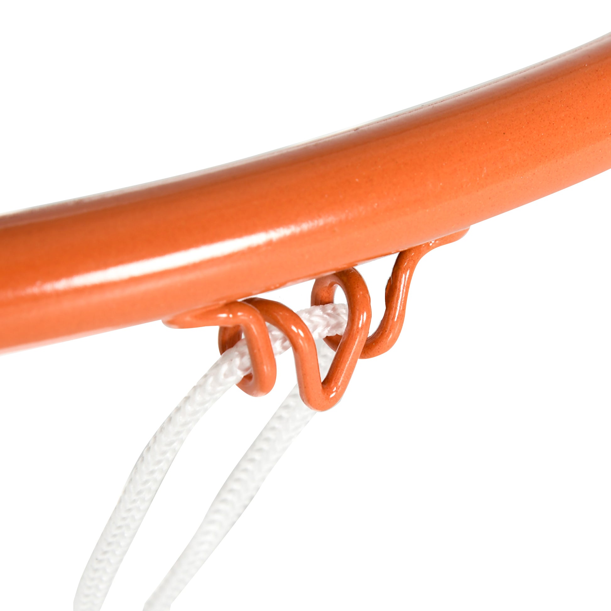 - Materiais: Fabricada em aço e PE, com aro em aço e rede de nylon resistente.