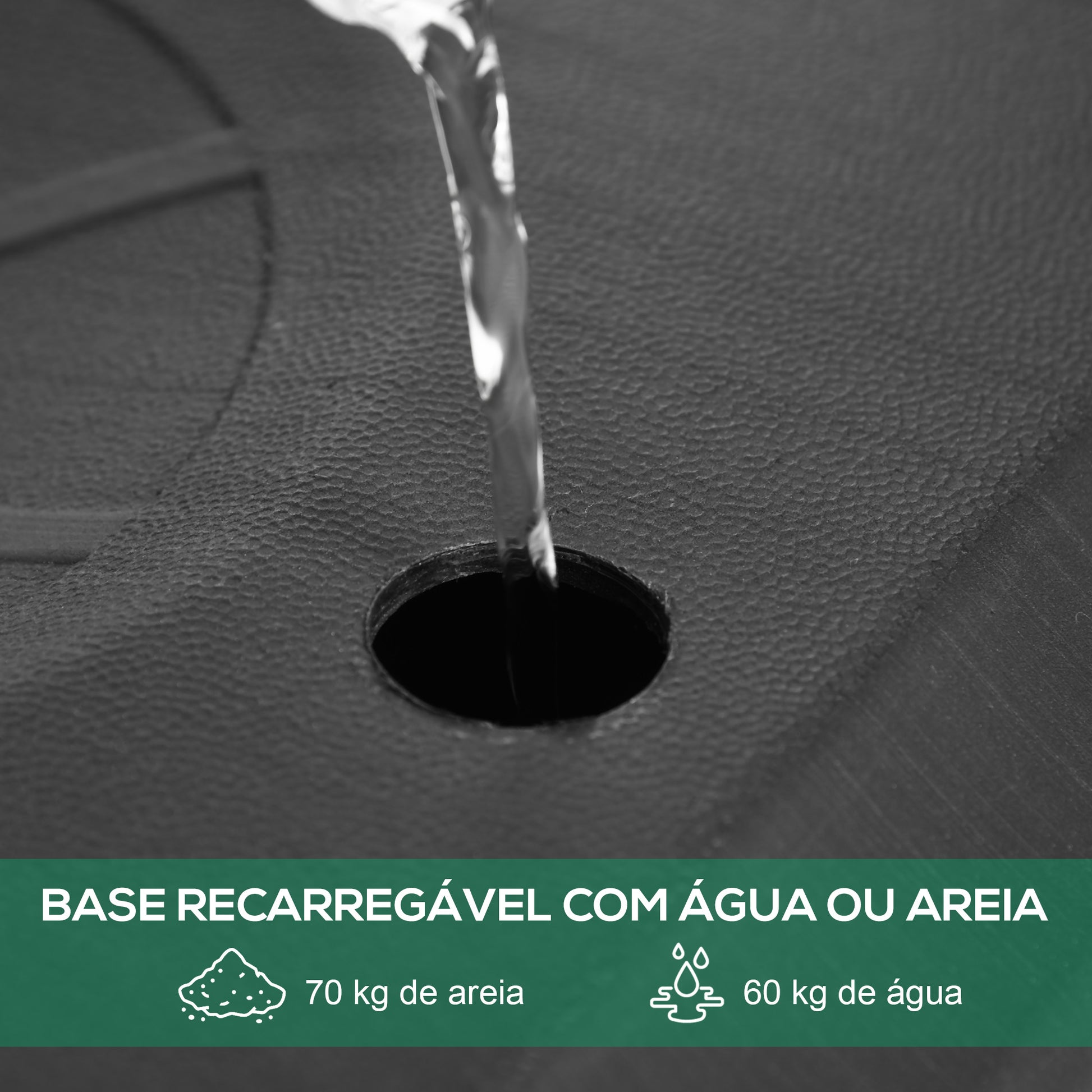 - Benefícios: Base estável que pode ser preenchida com até 60 kg de água ou 70 kg de areia, fácil de movimentar graças às rodas, resistente e durável para uso a longo prazo