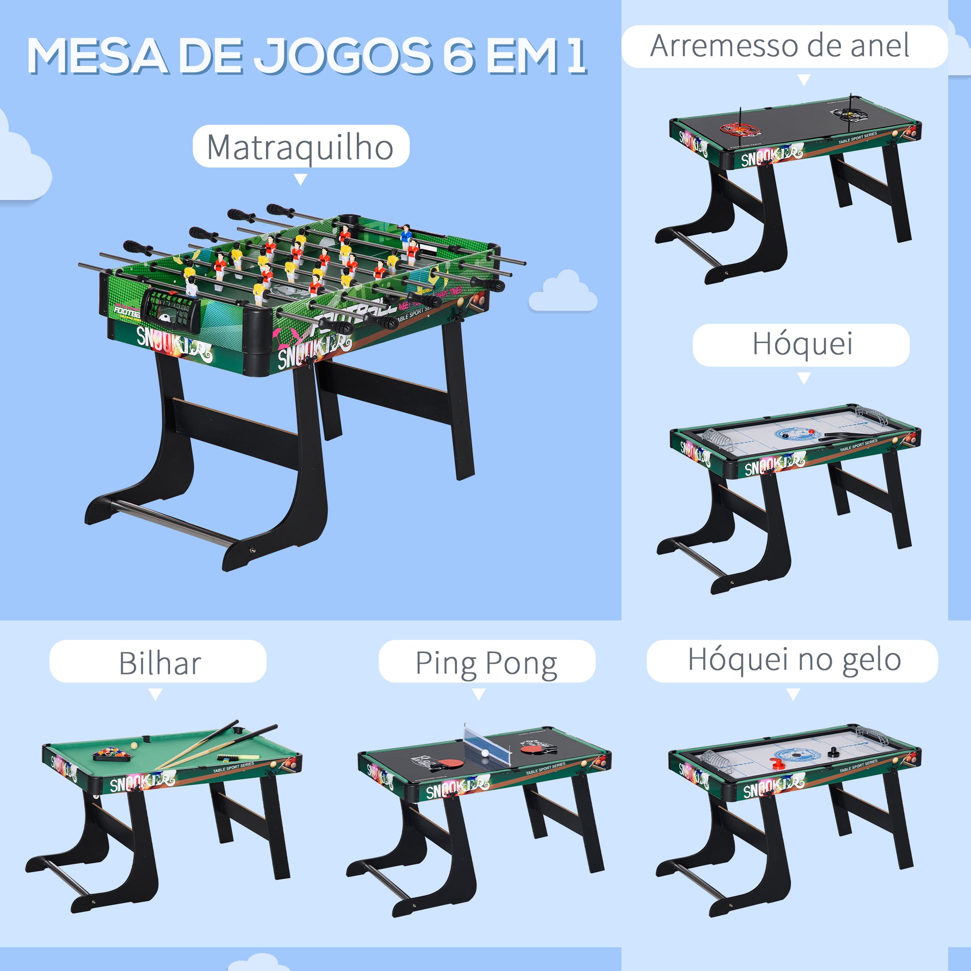 Divirta-se com sua família ou amigos com esta incrível mesa de jogos 6 em 1! Compacta e com design dobrável, é perfeita para momentos de diversão e interação.