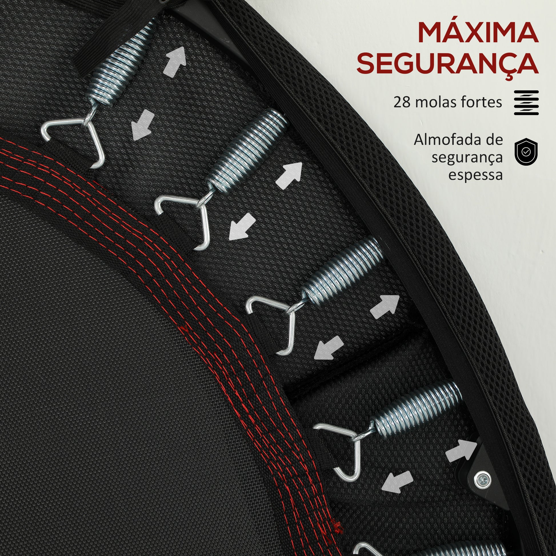 - Benefícios: 28 molas resistentes para saltos intensos, almofada de segurança para reduzir riscos de lesões e pernas de aço com almofadas antiderrapantes para estabilidade.