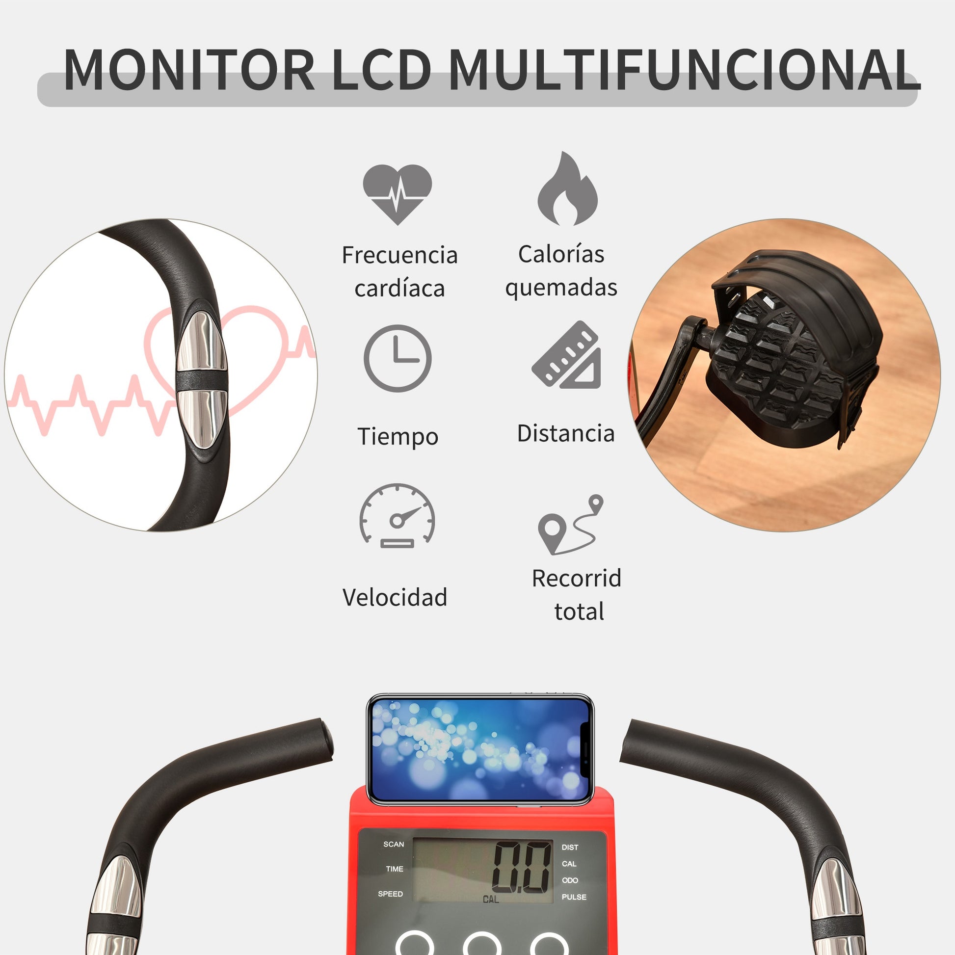 Bicicleta Estática Dobrável com Assento Ajustável 51x97x115cm Vermelho e Preto