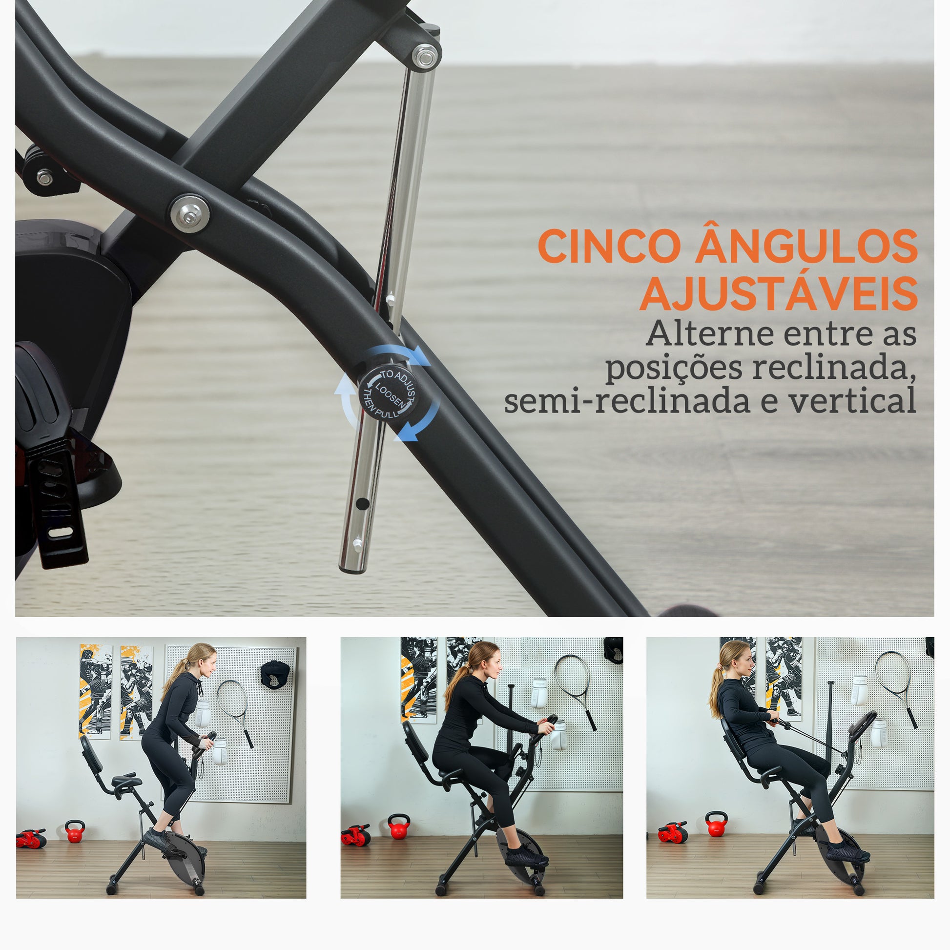- Benefícios: Cinco posições de pedaleira, resistência magnética silenciosa, assento acolchoado, design dobrável