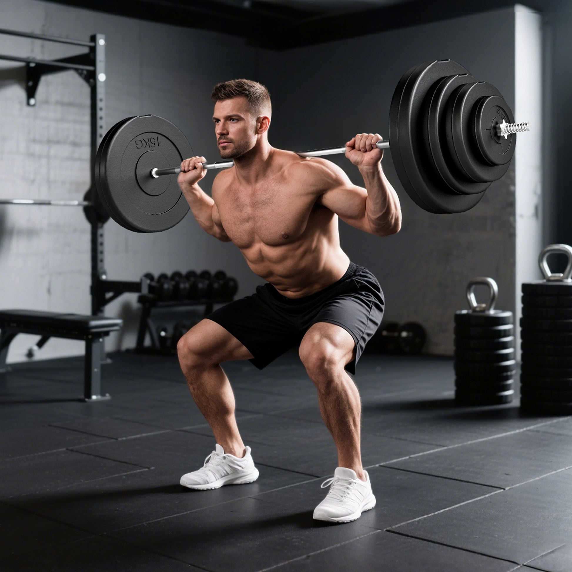 - Outras especificações relevantes: Inclui discos de 15 kg, 10 kg, 5 kg e 1,5 kg, além de uma barra de ferro com clips de bloqueio para segurança durante os exercícios.