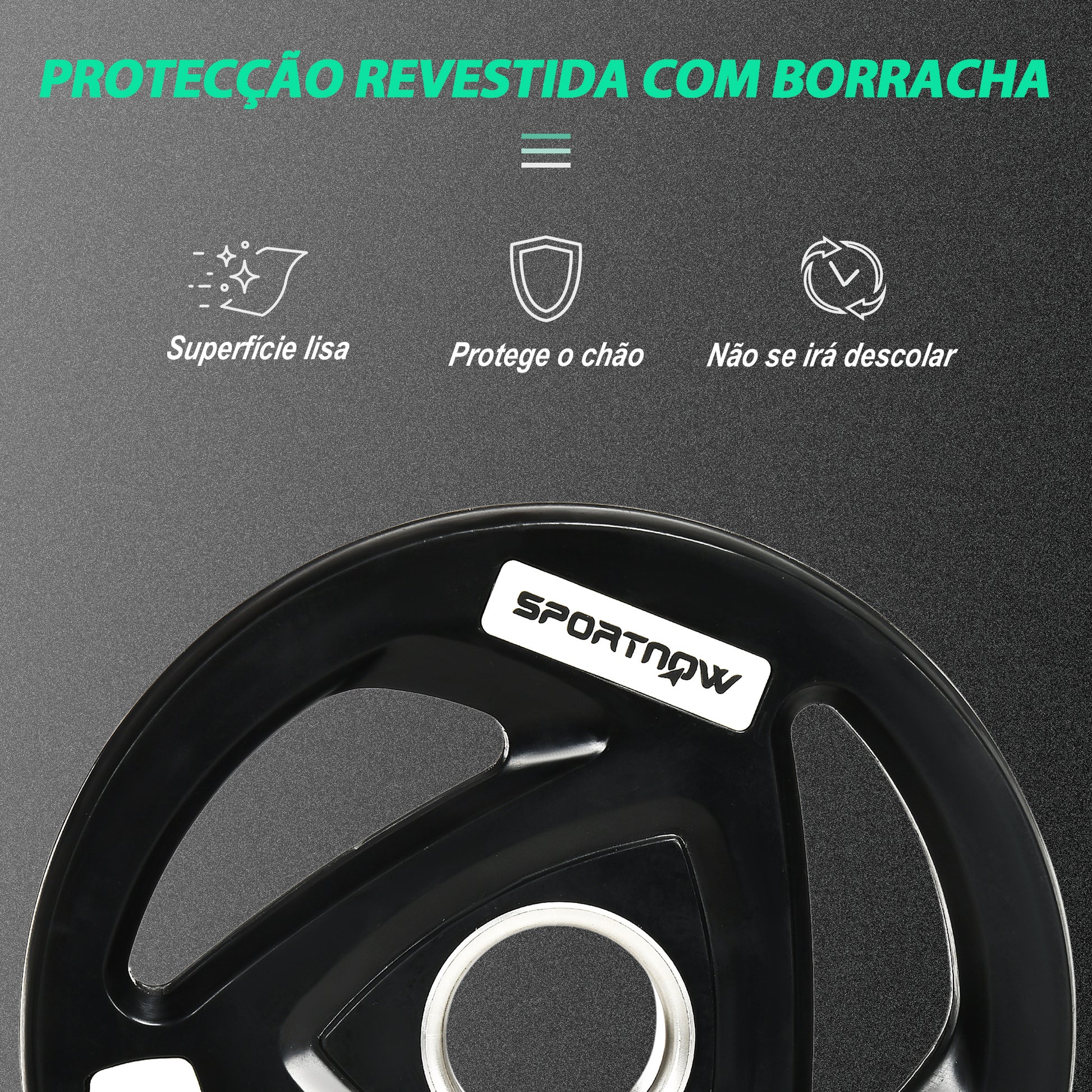 - Outras especificações: Orifício de 5cm para barras olímpicas padrão, revestimento de borracha para redução de ruído e resistência à corrosão