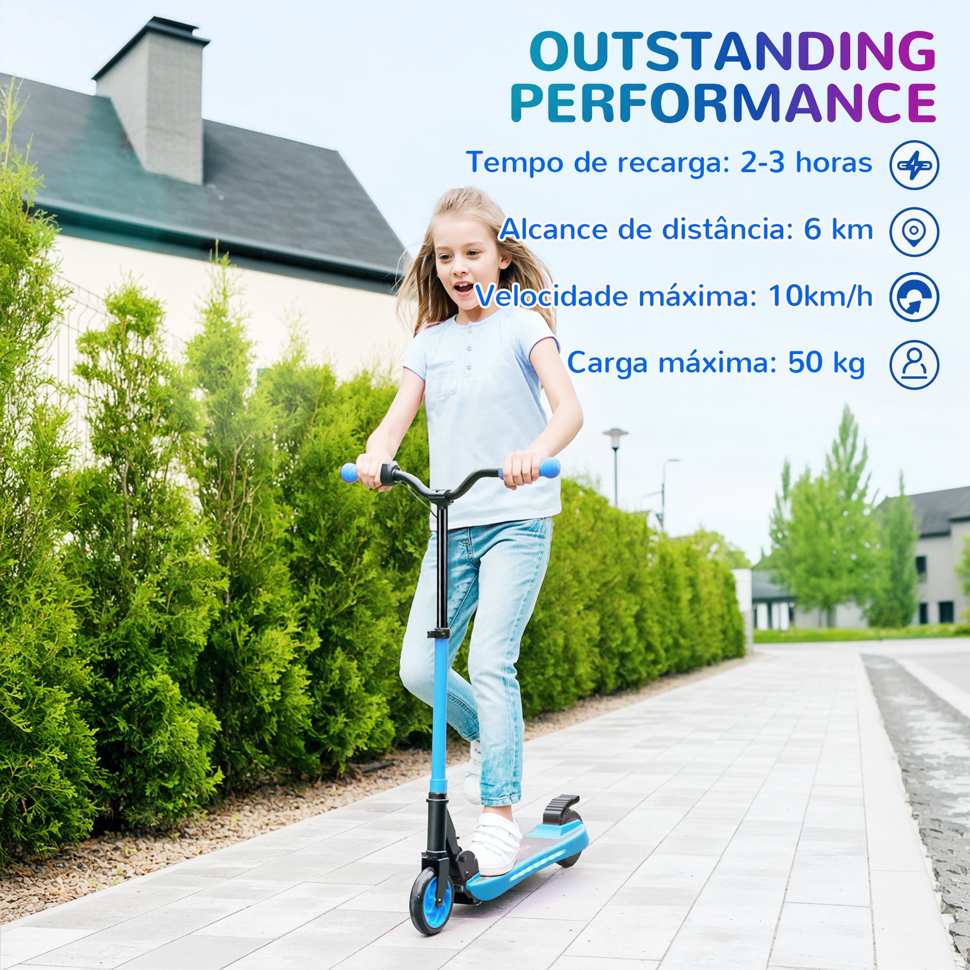 Divirta-se ao máximo com a trotinete elétrica infantil azul. Esta trotinete é ideal para crianças ativas, com autonomia de 6 km e velocidade máxima de 10 km/h.