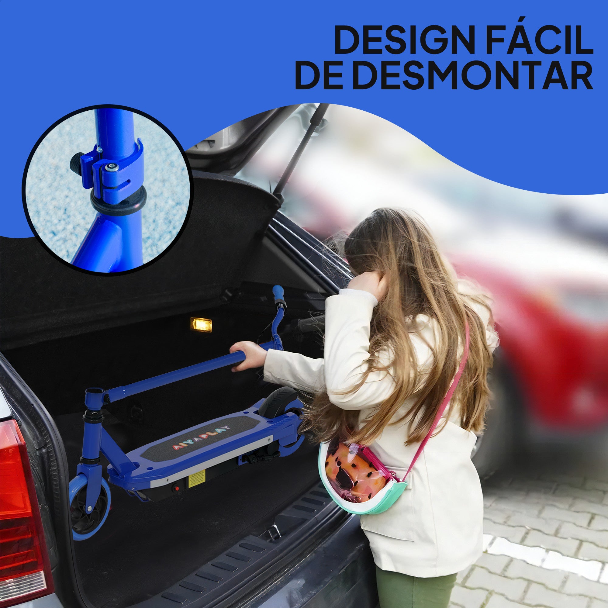 Procura uma trotinete elétrica divertida e segura? Este modelo azul de trotinete elétrica infantil é perfeito para passeios ao anoitecer, graças às suas barras luminosas dinâmicas, que tornam cada percurso mais emocionante.