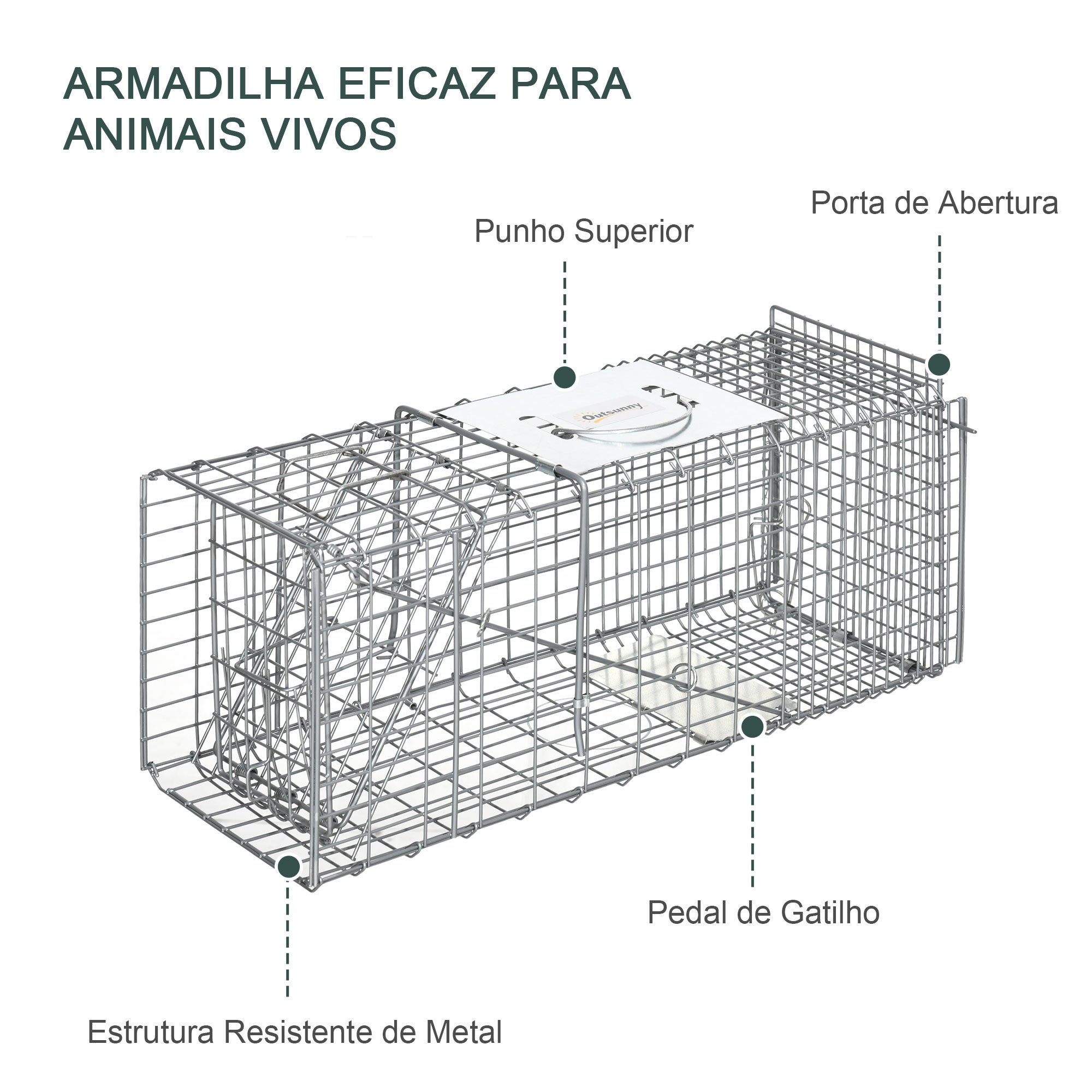 Armadilha para animais vivos – 66x24x30,5 cm – Prata – Aço