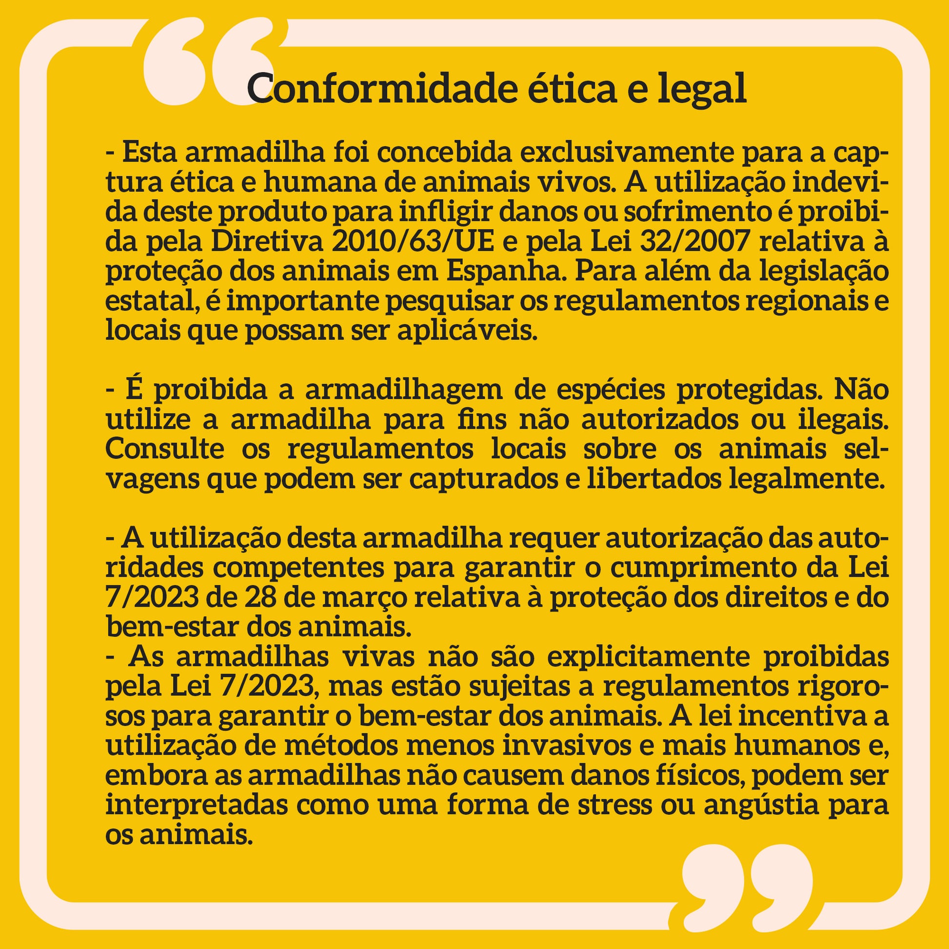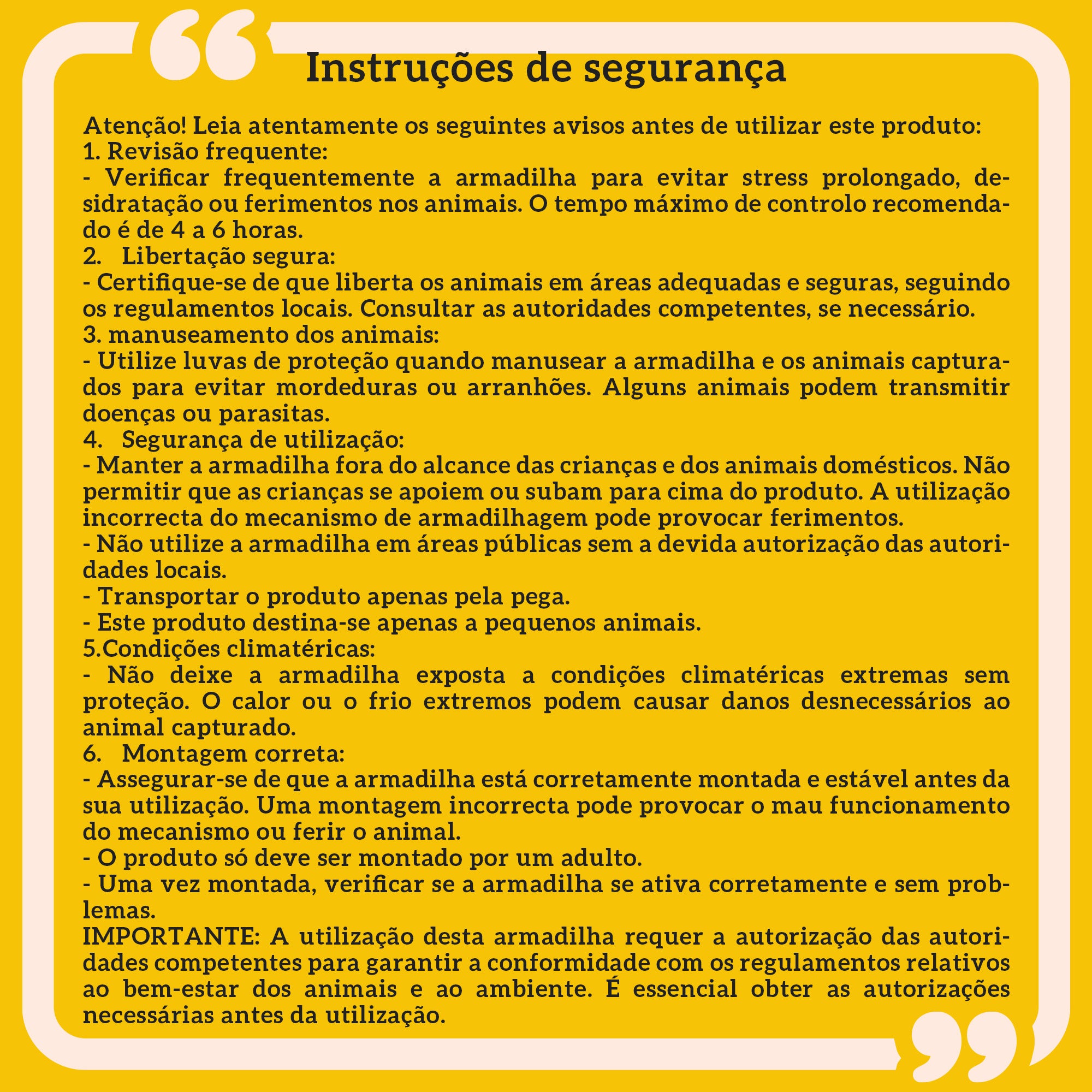 - Usos recomendados: Ideal para recolocação ou salvamento de animais selvagens, assim como para proteção de jardins e propriedades
