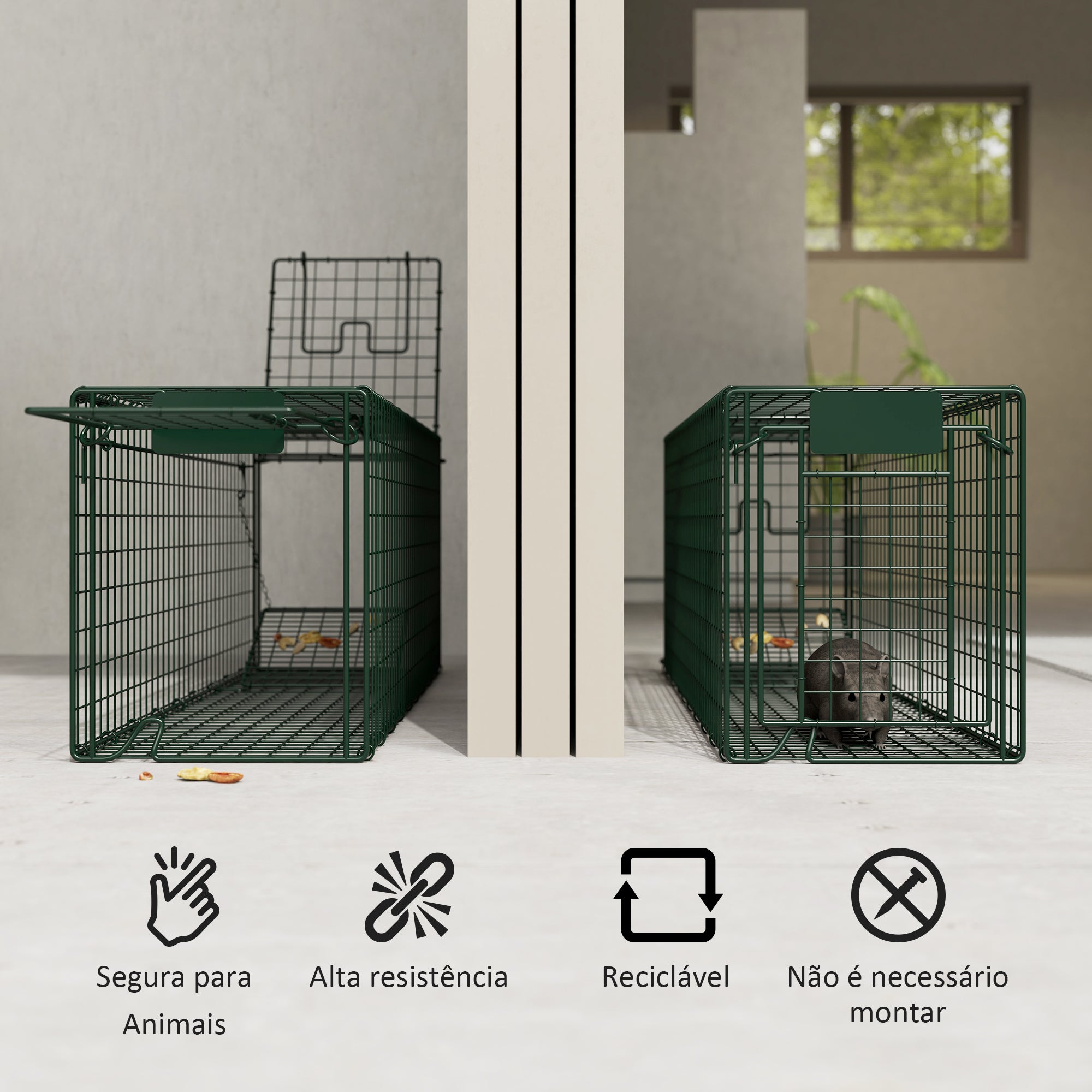 Armadilha de Captura de Animais Vivos – 100x24x30 cm – Verde – Aço