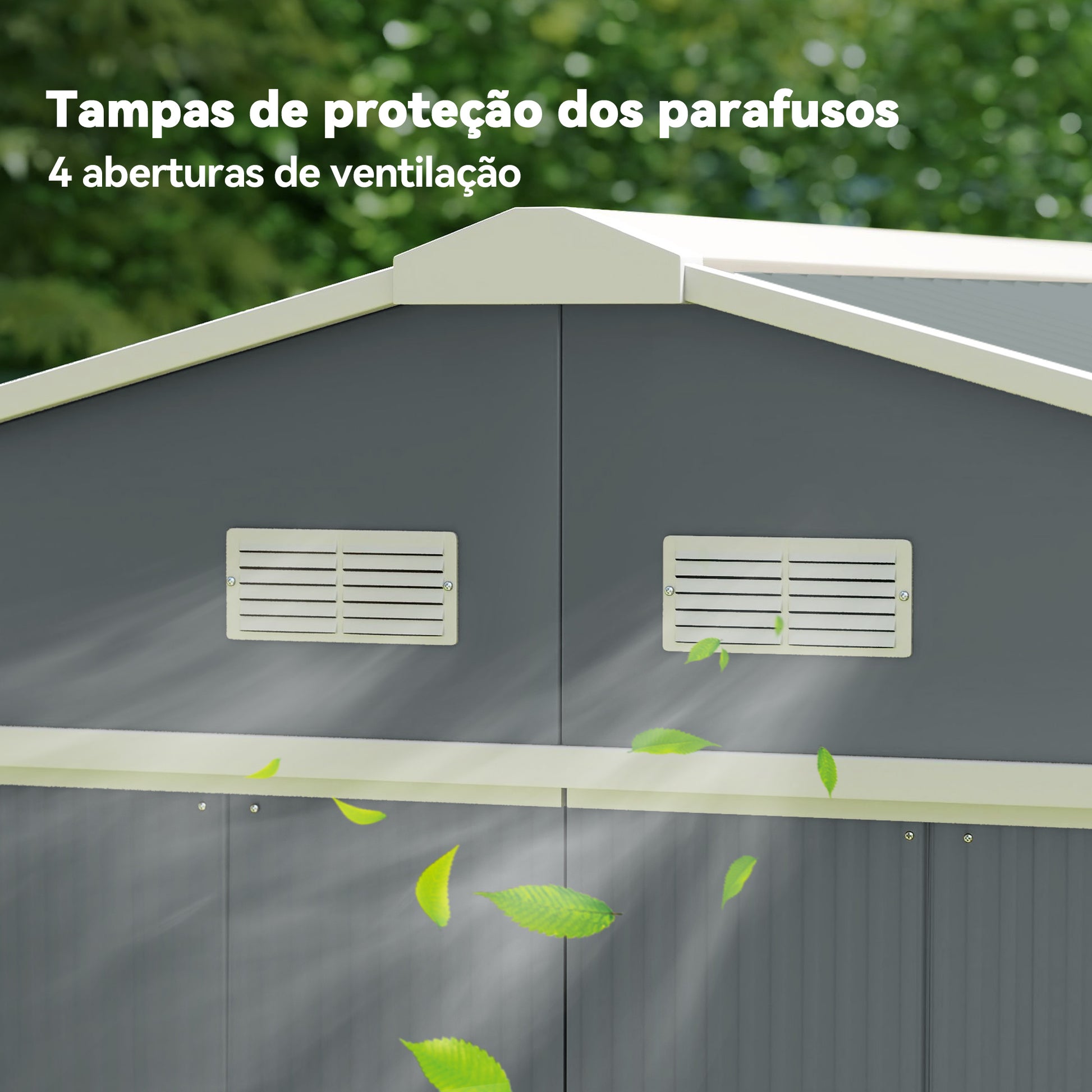 Abrigo de Jardim Metálico 340x386x200cm Cinza e Branco