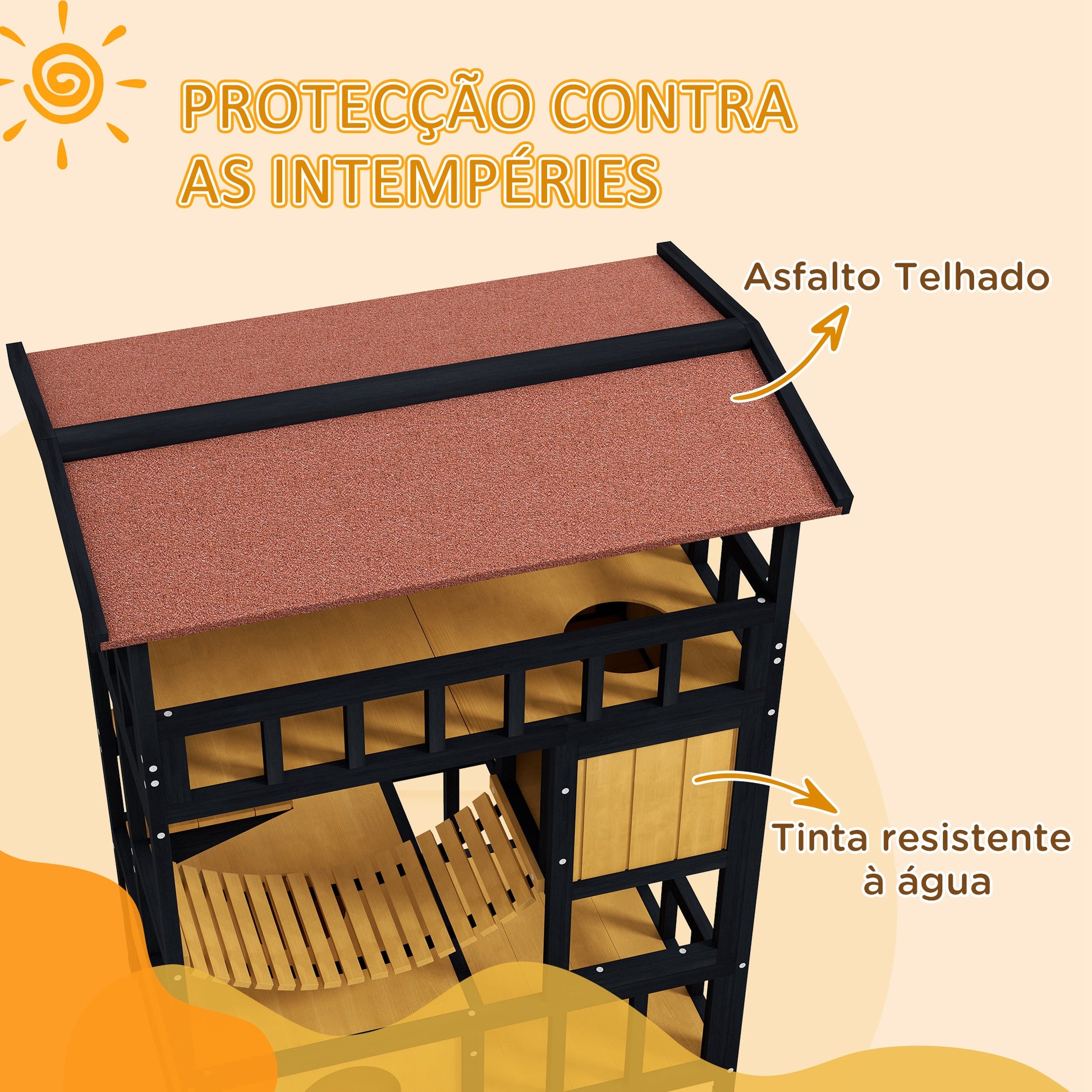 Abrigo para Gatos de Madeira 84x60x116 cm - Natural e Preto