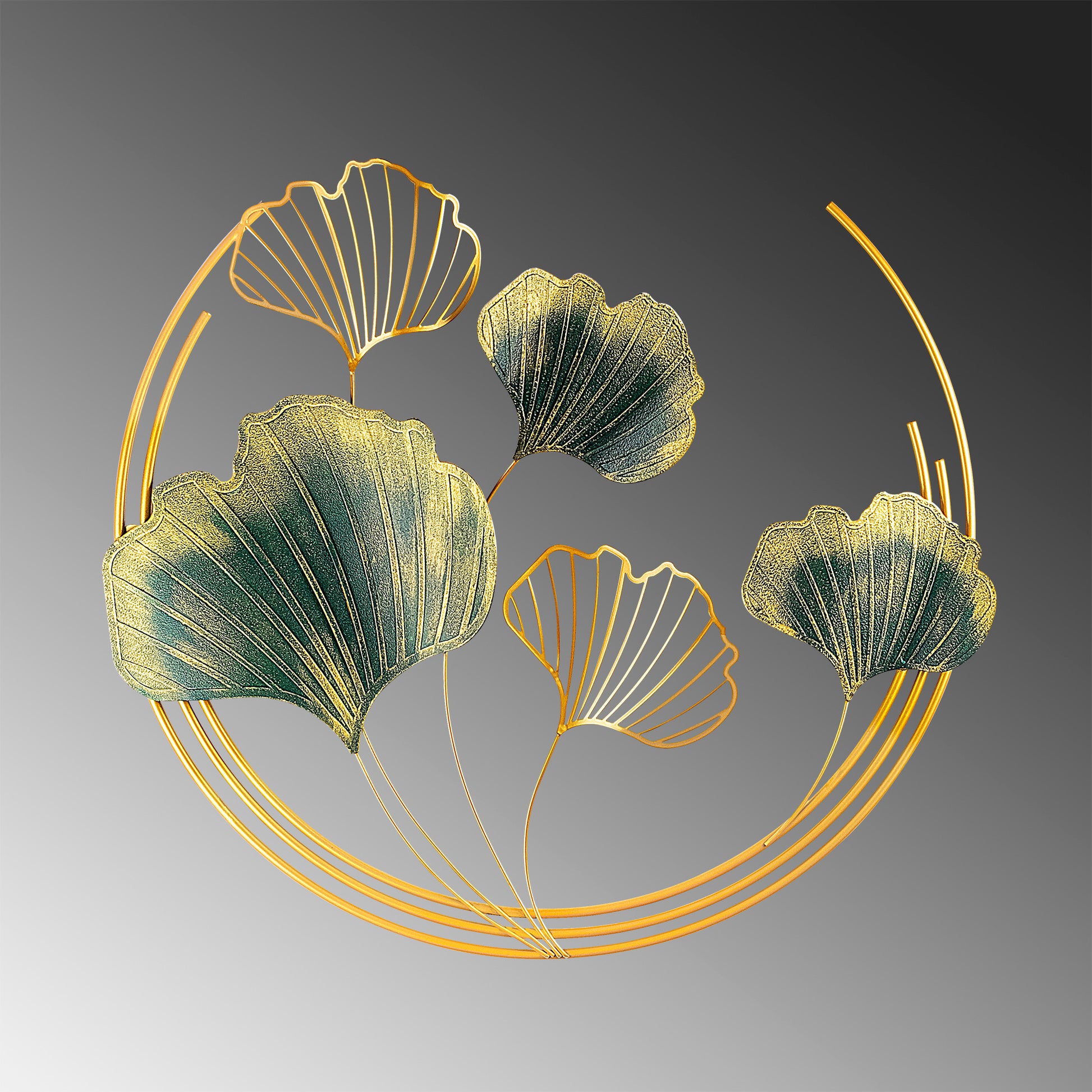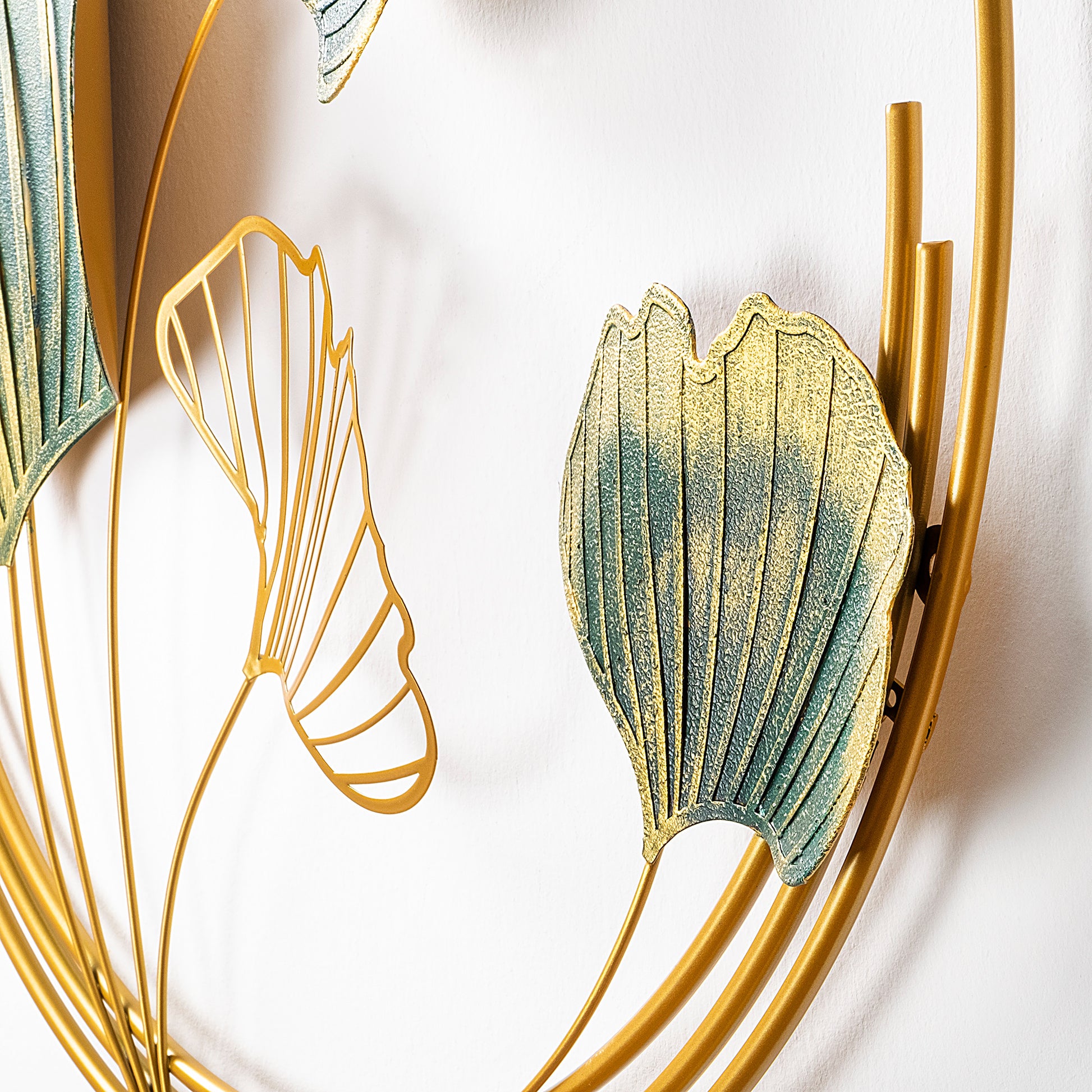 Acessório decorativo de parede em metal pintado à mão, 70 x 70 x 7 cm, verde e dourado | 100% metal, textura única | Perfeito para decoração de casa e paredes de destaque
