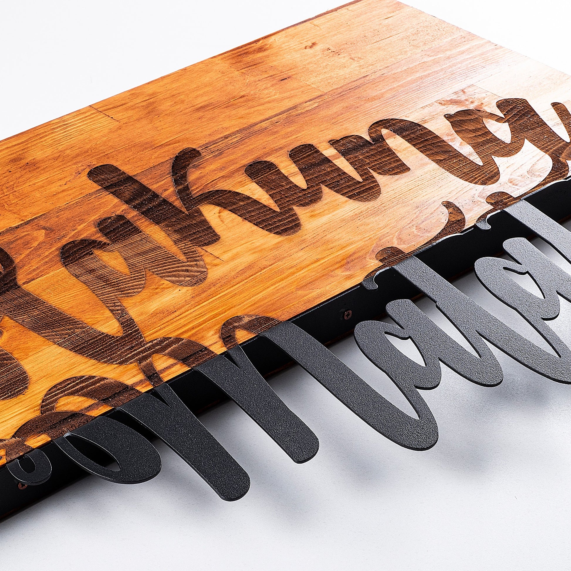 Acessório decorativo de parede – 58 x 38 cm – nogueira e preto – madeira e metal