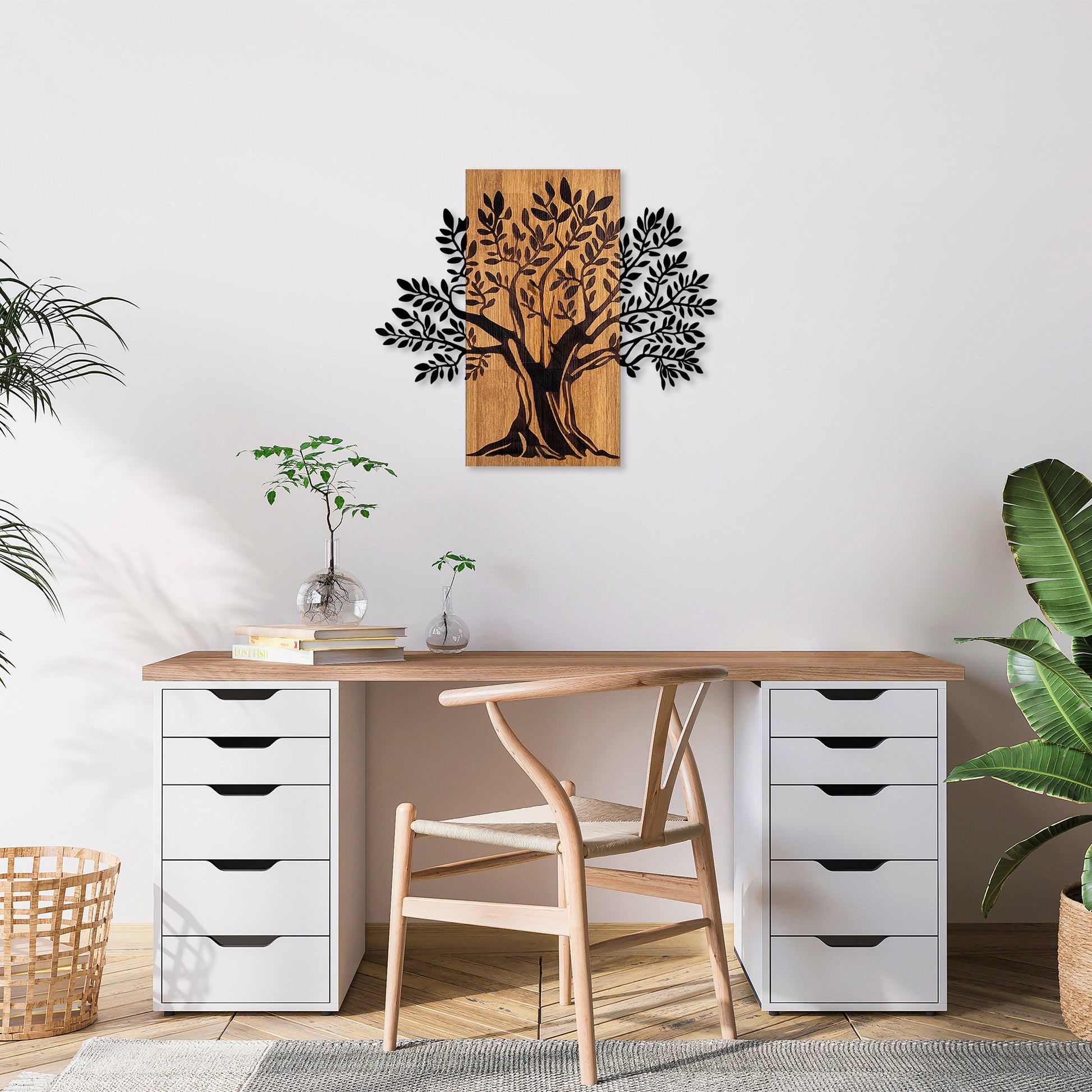 Acessório Decorativo de Parede – 58 x 65 cm – Nogueira e Preto – Madeira e Metal