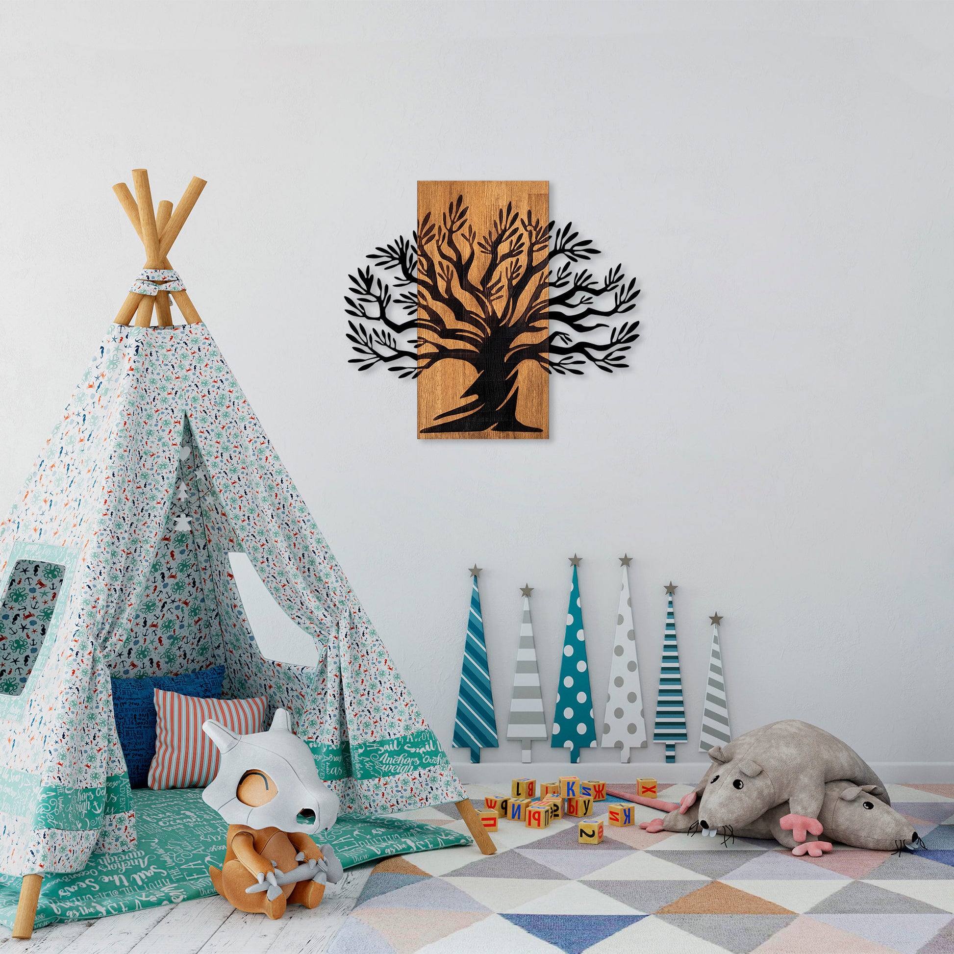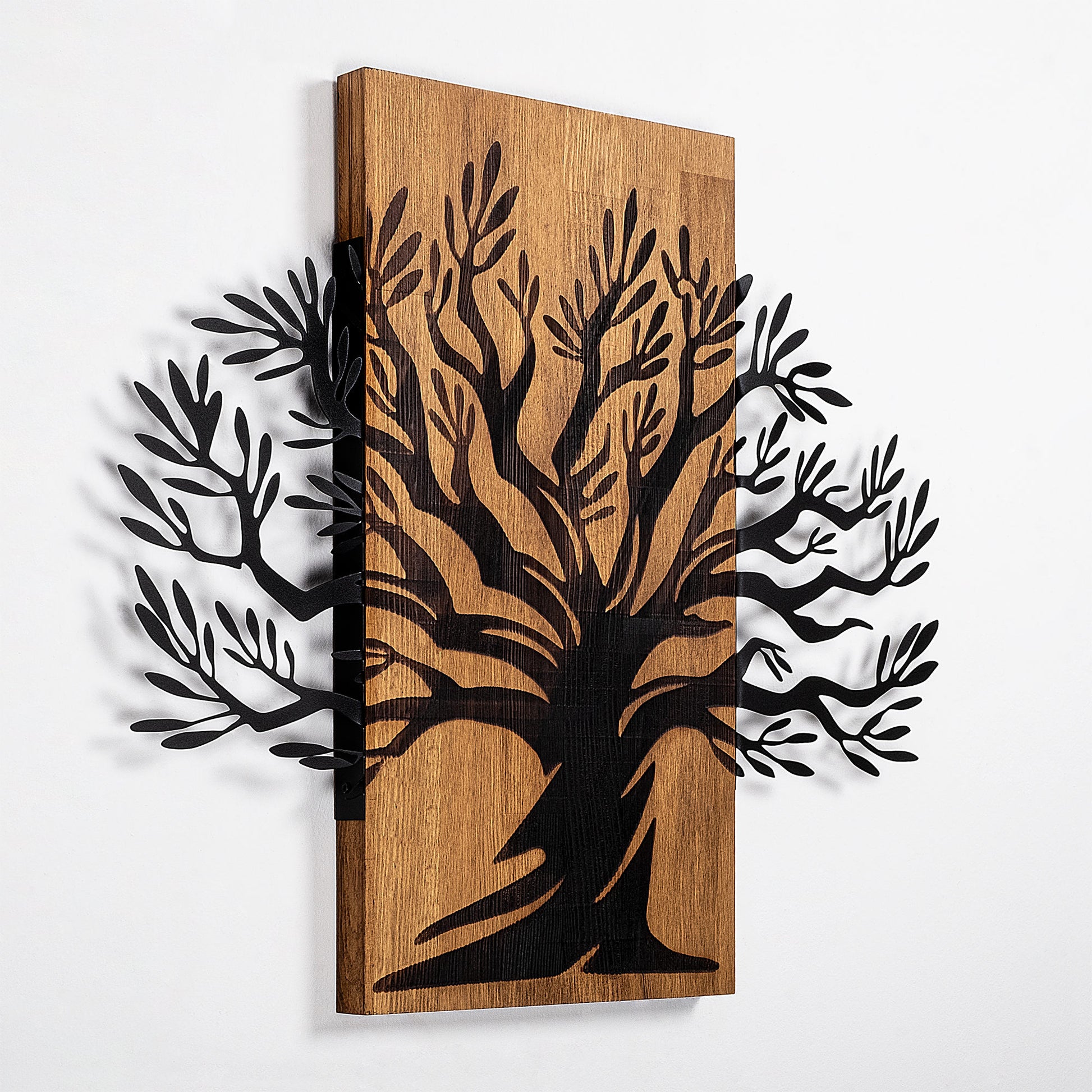 Acessório Decorativo de Parede em Madeira e Metal – 58 x 67 cm – Nogueira e Preto