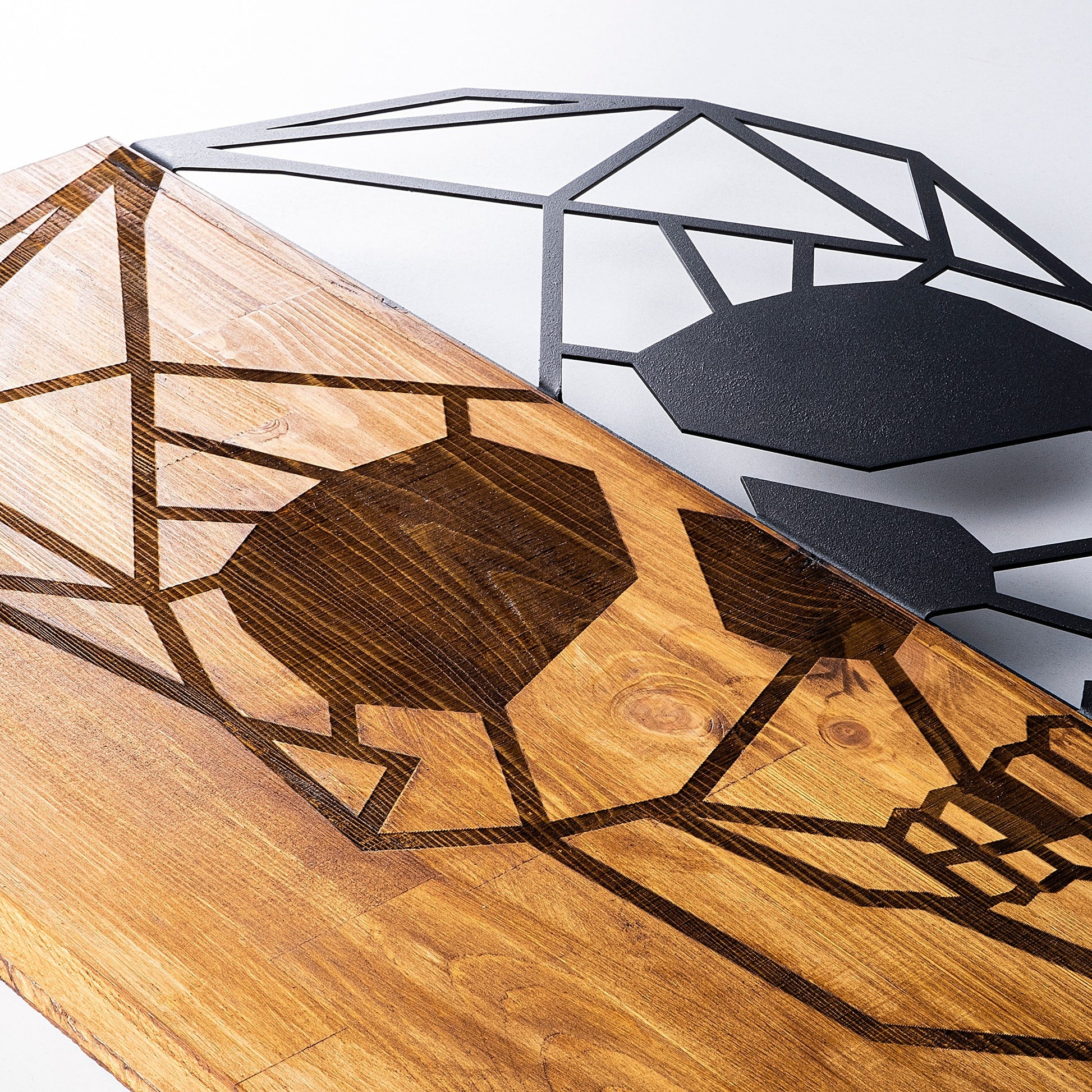 Elegante acessório decorativo de parede em madeira, 44 x 58 cm | 50% madeira (3 cm de espessura) e 50% metal | Acabamento exclusivo em nogueira e preto, perfeito para decoração moderna