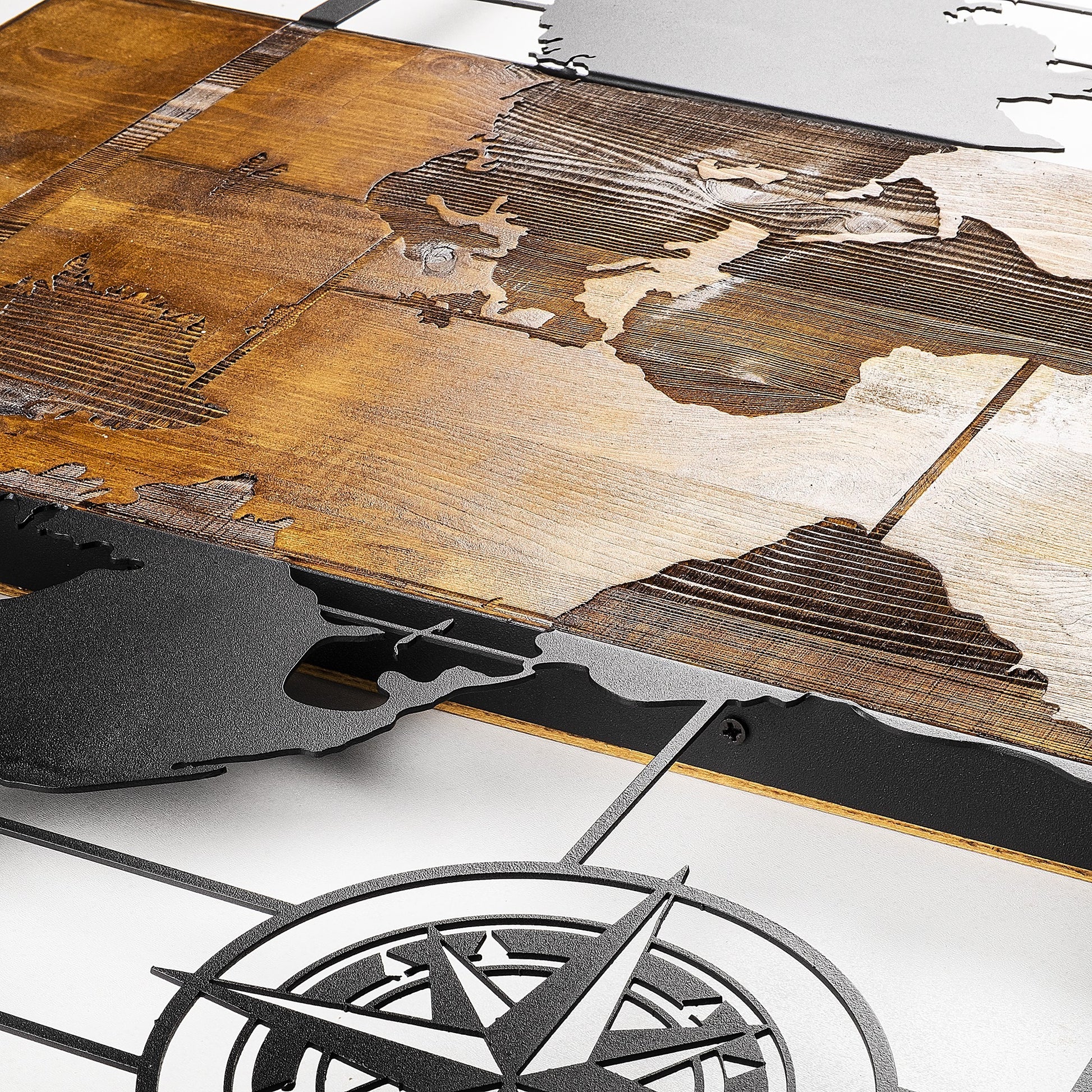 Acessório Decorativo de Parede em Madeira – 58 x 85 cm – Noz e Preto – 50% Madeira e 50% Metal