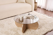 Mesa de Centro – 75 x 35 x 75 cm – Carvalho Safira e Fumaça – Vidro Temperado e MDF Revestido de Melamina