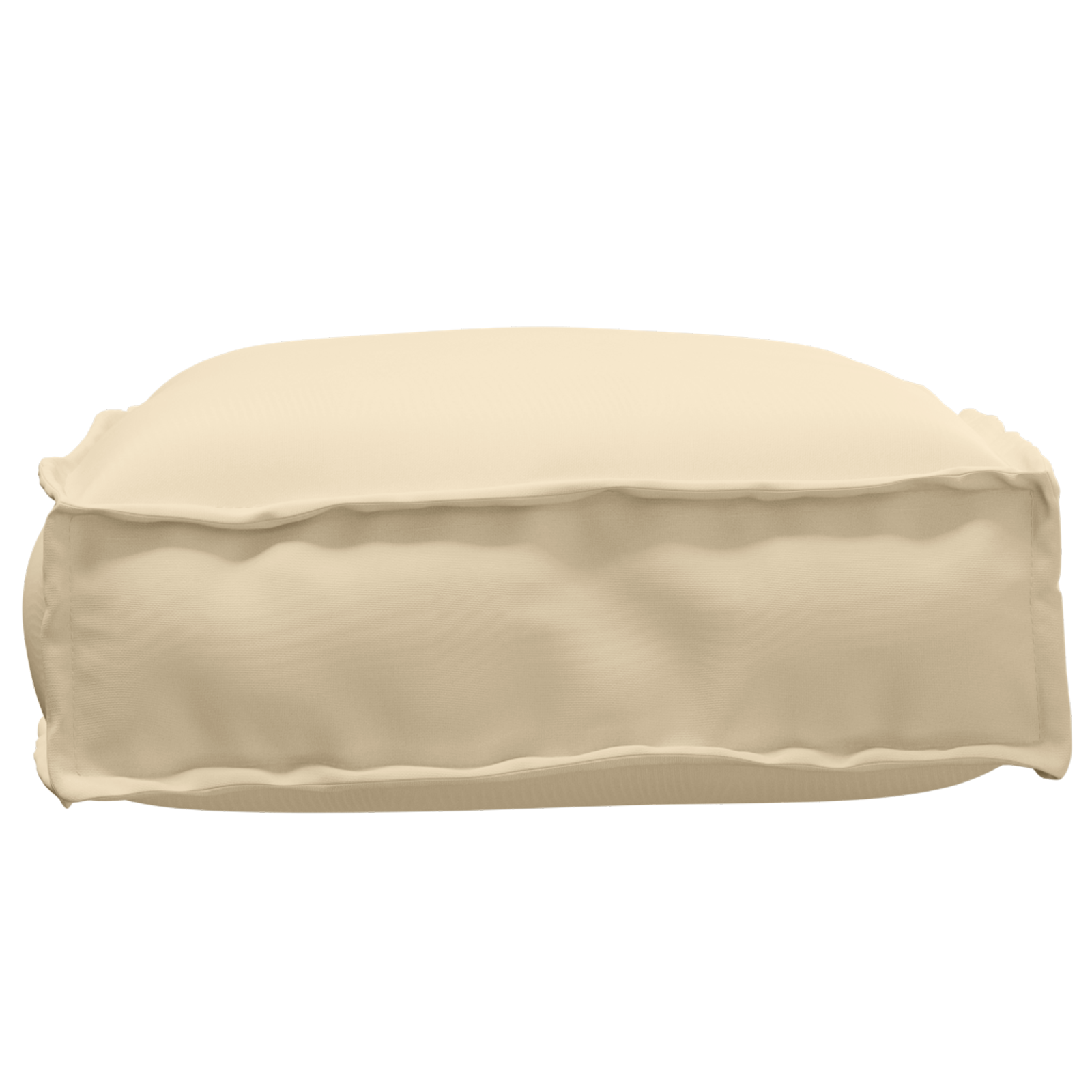 - Características / Função / Design: A almofada é à prova d'água, então mantém a umidade afastada. Ela continua confortável e com uma textura boa mesmo após uma chuva ou derramamento. O formato retangular dela se encaixa direitinho nos móveis de palete padrão, melhorando tanto a funcionalidade quanto a aparência.