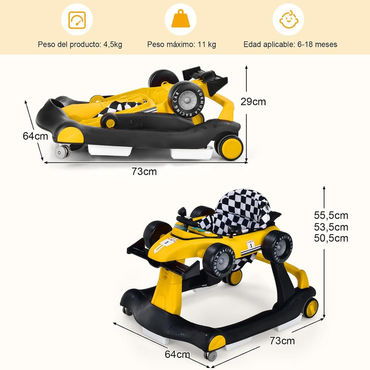 - Função Educativa e Recreativa: O andador em forma de carro de corrida com volante, luzes e música permite ao bebé aprender a andar num ambiente divertido e é um presente perfeito para bebés (o painel requer 2 pilhas AA, não incluídas).
