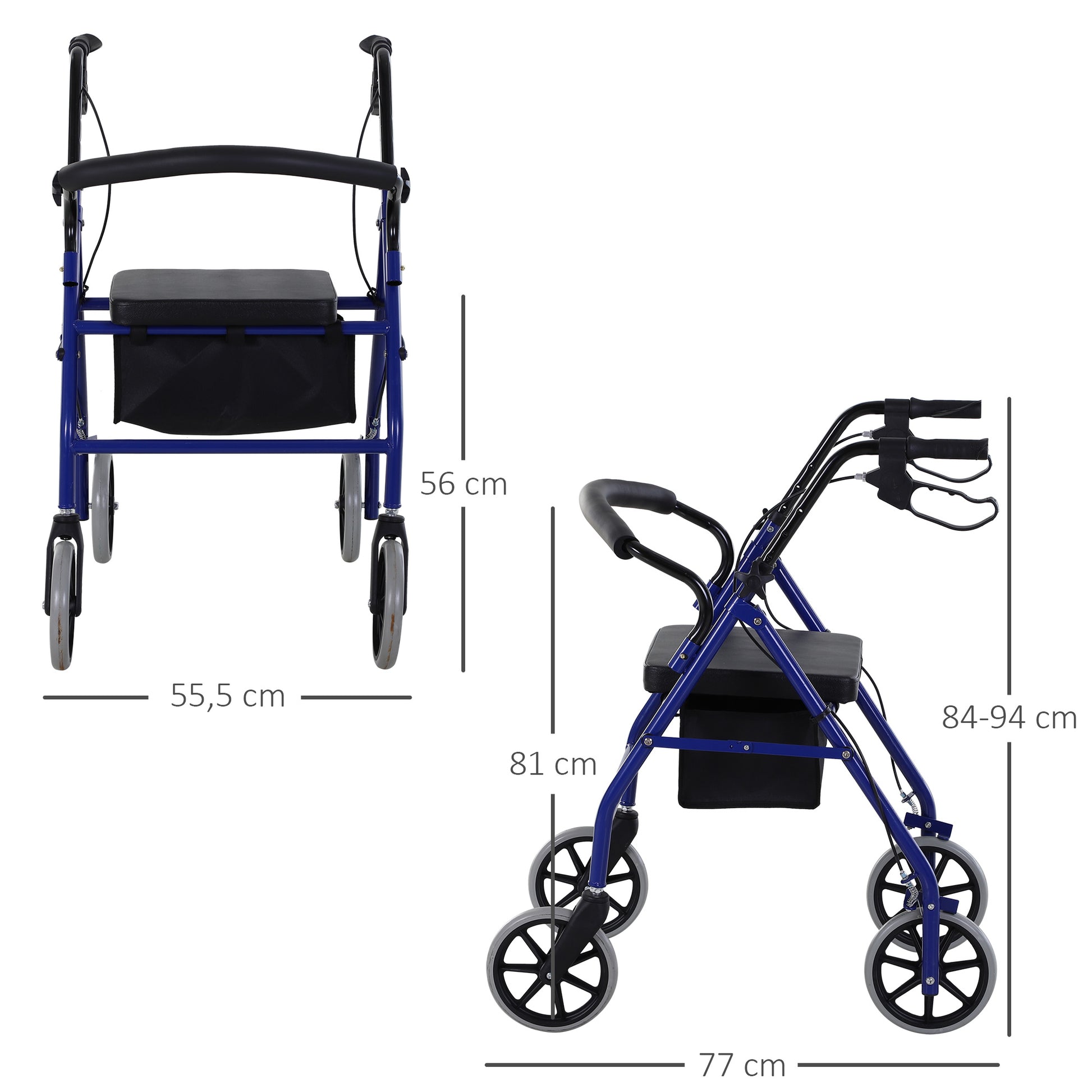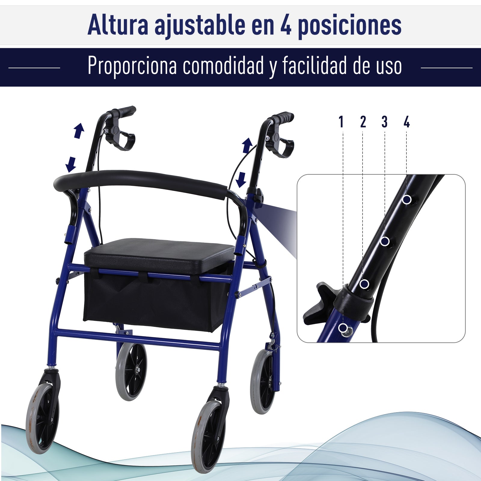 Andador Dobrável com Assento e Travão – 65x53x79-89cm – Azul e Preto – Metal