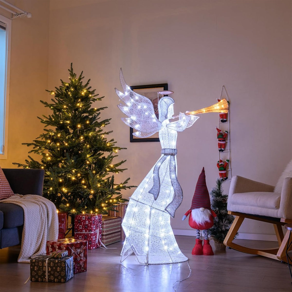 - Ángel Luminoso e Elegante: Ilumine a sua época natalícia com este anjo de Natal pré-iluminado de 156 cm de altura. Com um halo sagrado, uma adorável trombeta, um cinto fluído e um par de asas icónicas, este anjo é um farol de alegria festiva, trazendo a atmosfera natalícia ao seu redor.