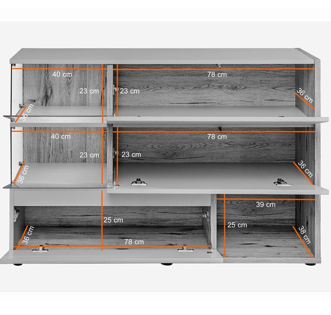 Aparador elegante – 120 cm x 77 cm x 40 cm – Branco e Cinzento – Melamina com MDF e Vidro