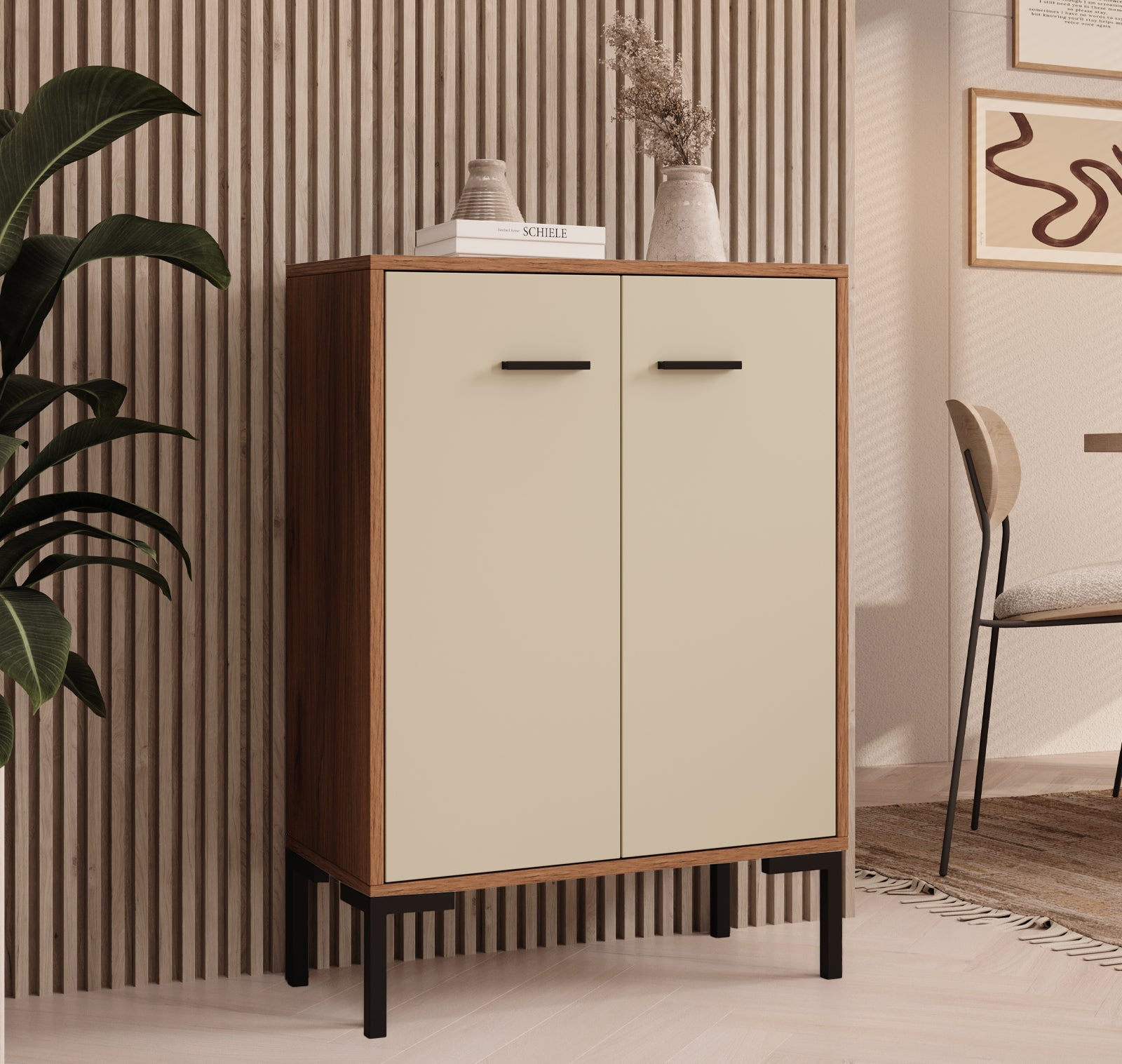 Aparador em Nogueira Âmbar e Bege – 84 cm