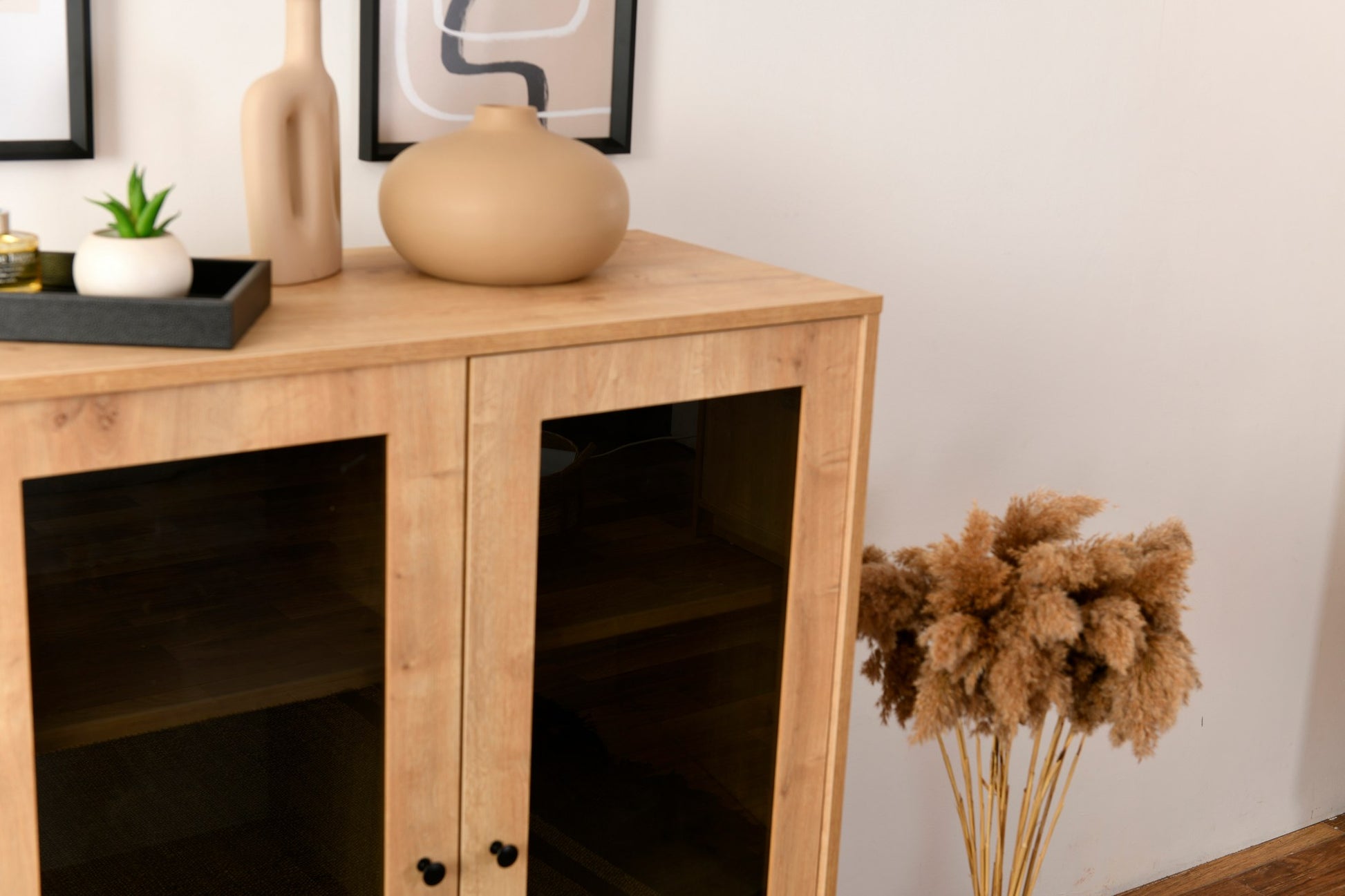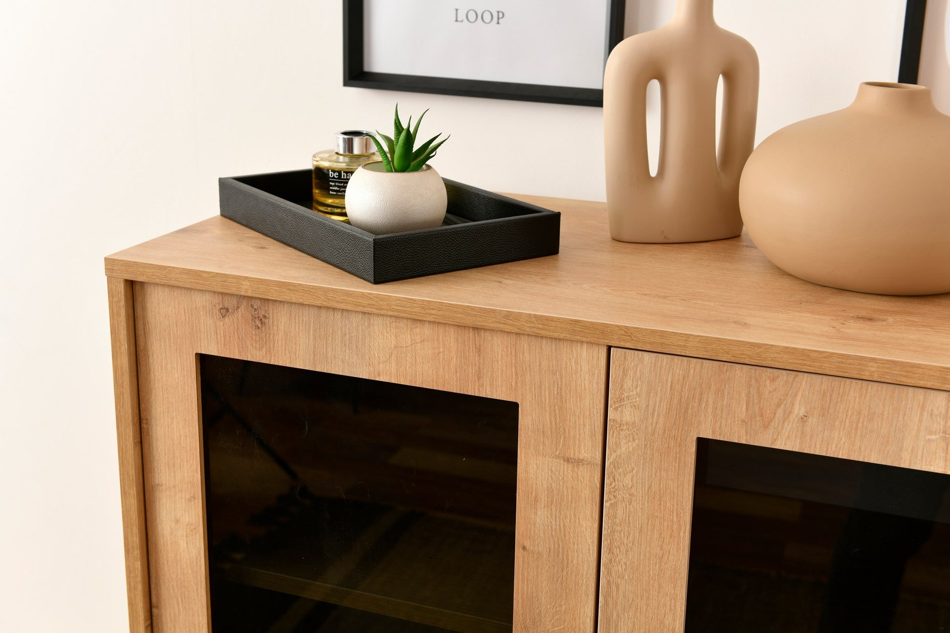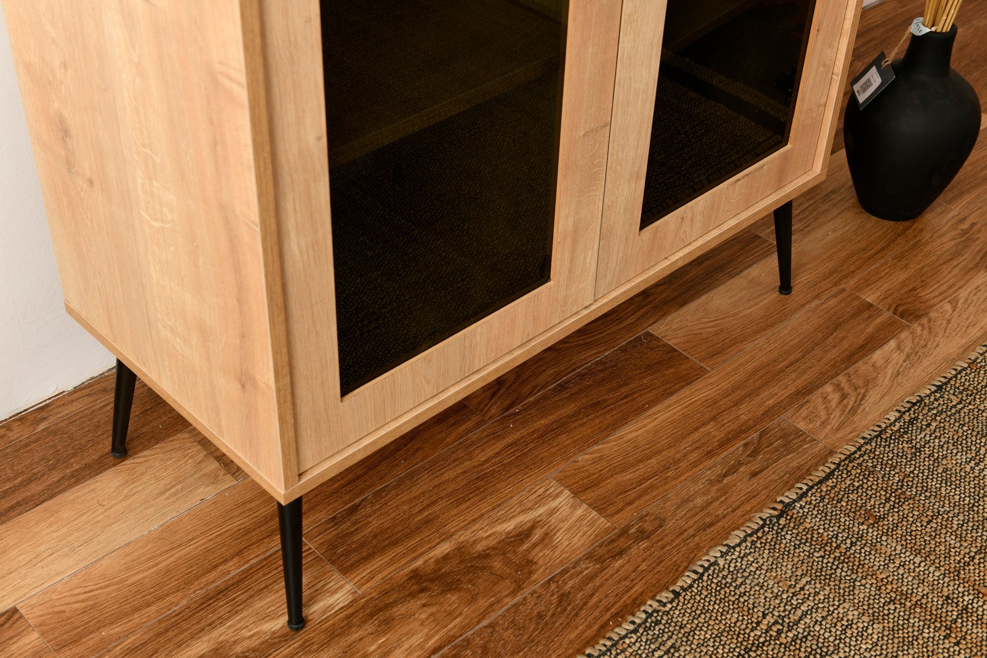 Transforme a sua sala de estar ou sala de jantar num refúgio elegante com o nosso aparador em carvalho e preto. A combinação elegante das cores carvalho e preto dá um toque de sofisticação a qualquer divisão, elevando instantaneamente a decoração da sua casa. Quer esteja a organizar um jantar ou simplesmente a desfrutar de uma noite acolhedora, este aparador impressionará os seus convidados e criará uma atmosfera calorosa e convidativa.