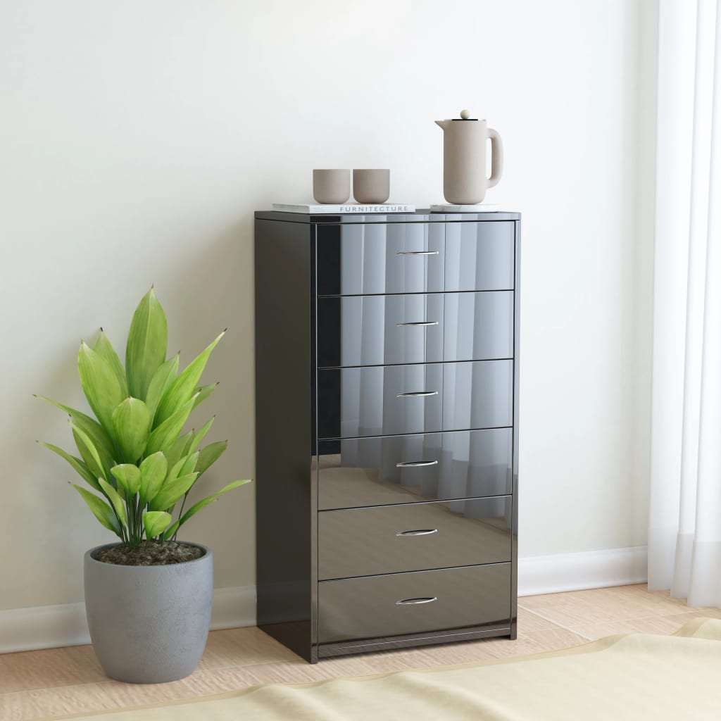 Feito em contraplacado de qualidade, este aparador é extremamente durável e resistente. O aparador oferece um grande espaço de arrumação com 6 gavetas. Pode manter os seus livros, aparelhos multimédia e outros pertences pessoais organizados e ao seu alcance. O tampo robusto é ideal para expor objetos decorativos, molduras ou vasos com plantas.