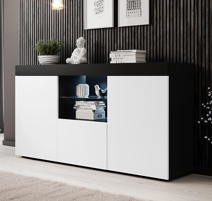 Aparador – 150 x 83 cm – Negro e Branco – Melamina mate