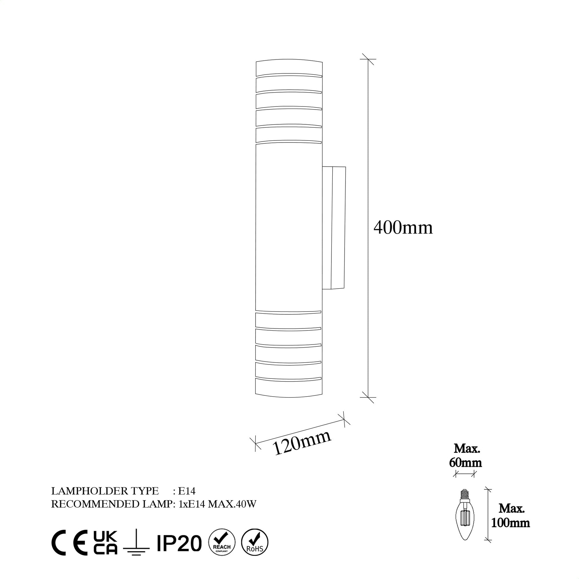 Com o candeeiro de parede de corpo metálico, tem a liberdade de escolher a atmosfera de iluminação perfeita para qualquer ocasião. O candeeiro requer duas lâmpadas g9 com uma potência máxima de 10 w cada, permitindo-lhe personalizar a luminosidade de acordo com as suas necessidades. As lâmpadas não estão incluídas no candeeiro.