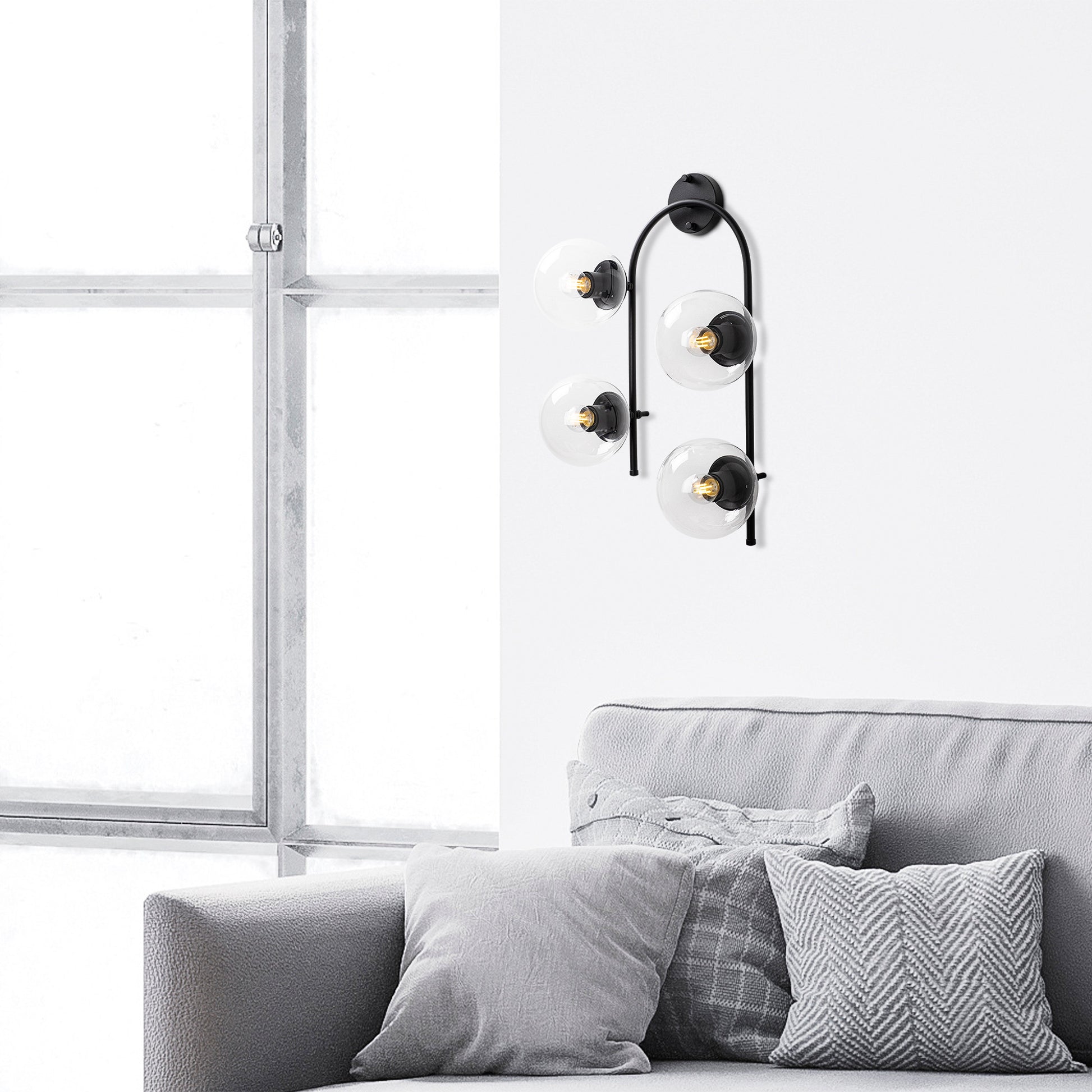 Candeeiro de Parede preta moderna, corpo de metal e tampa de vidro, 62 cm de altura | IP20, 4 soquetes E14, design industrial e escandinavo | Ideal para casa e escritório
