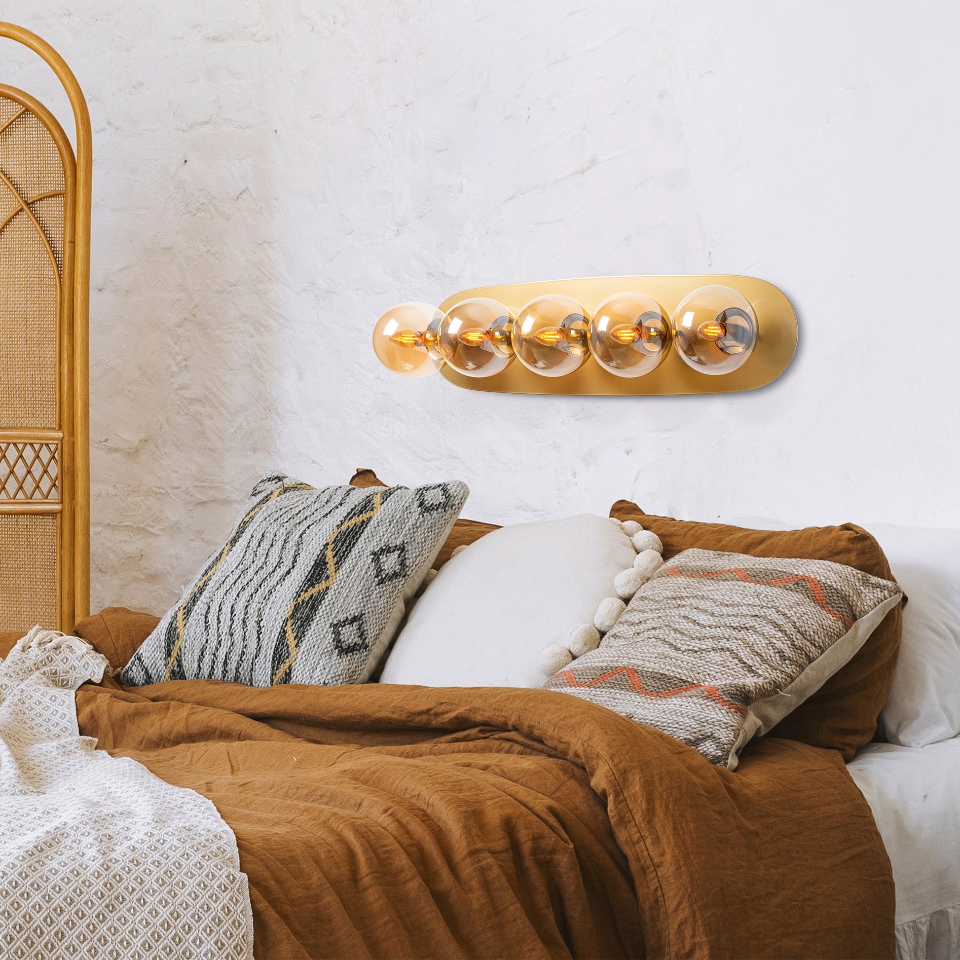Candeeiro de Parede elegante com corpo de metal e tampa de vidro, acabamento dourado, 90 x 23 x 26 cm | 5 soquetes E14, máx. 40 W | Design escandinavo moderno para espaços glamorosos