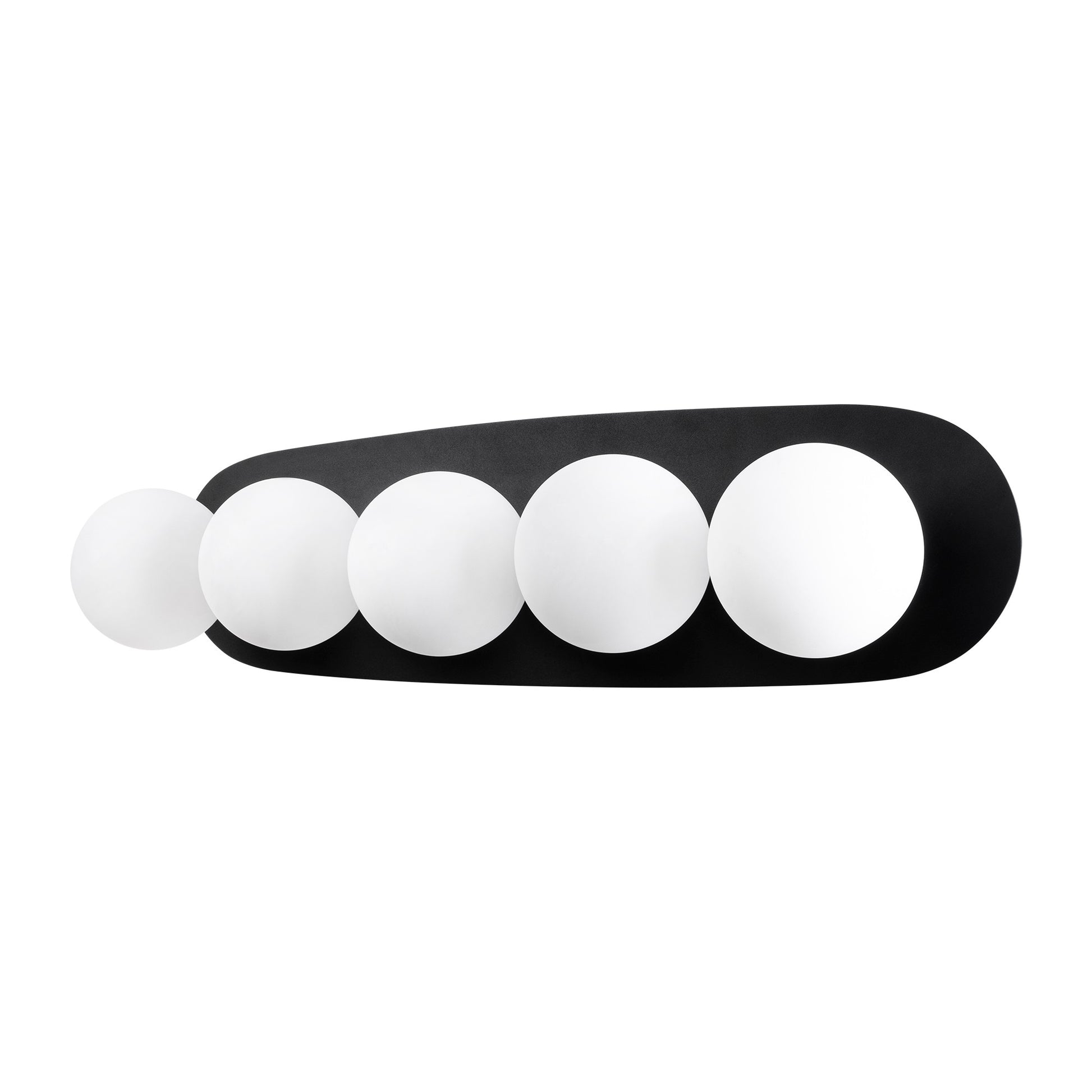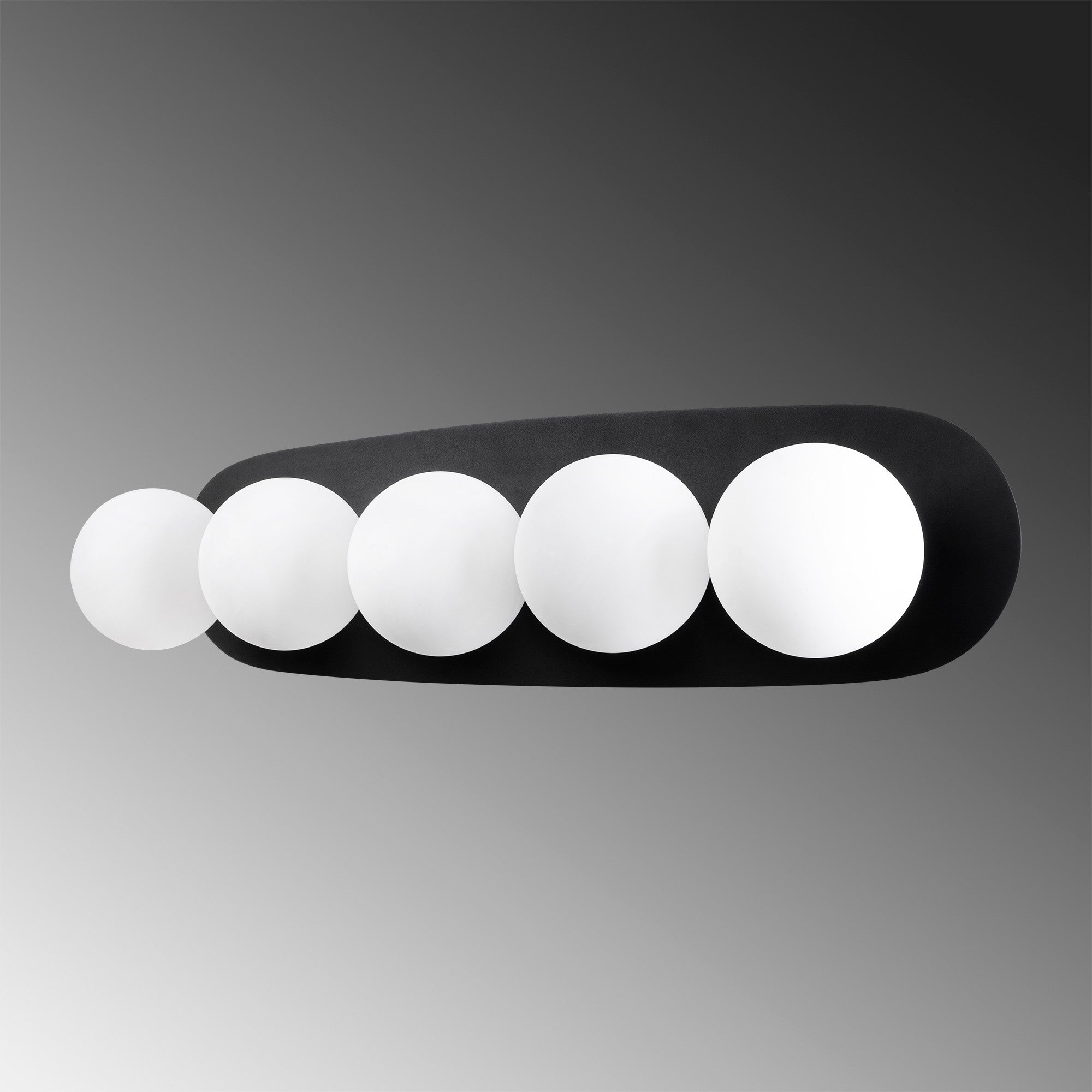 Candeeiro de Parede moderna com corpo de metal e base de vidro, 90 x 23 x 26 cm, preta e creme | 5 soquetes E14, IP20 | Design industrial e escandinavo elegante