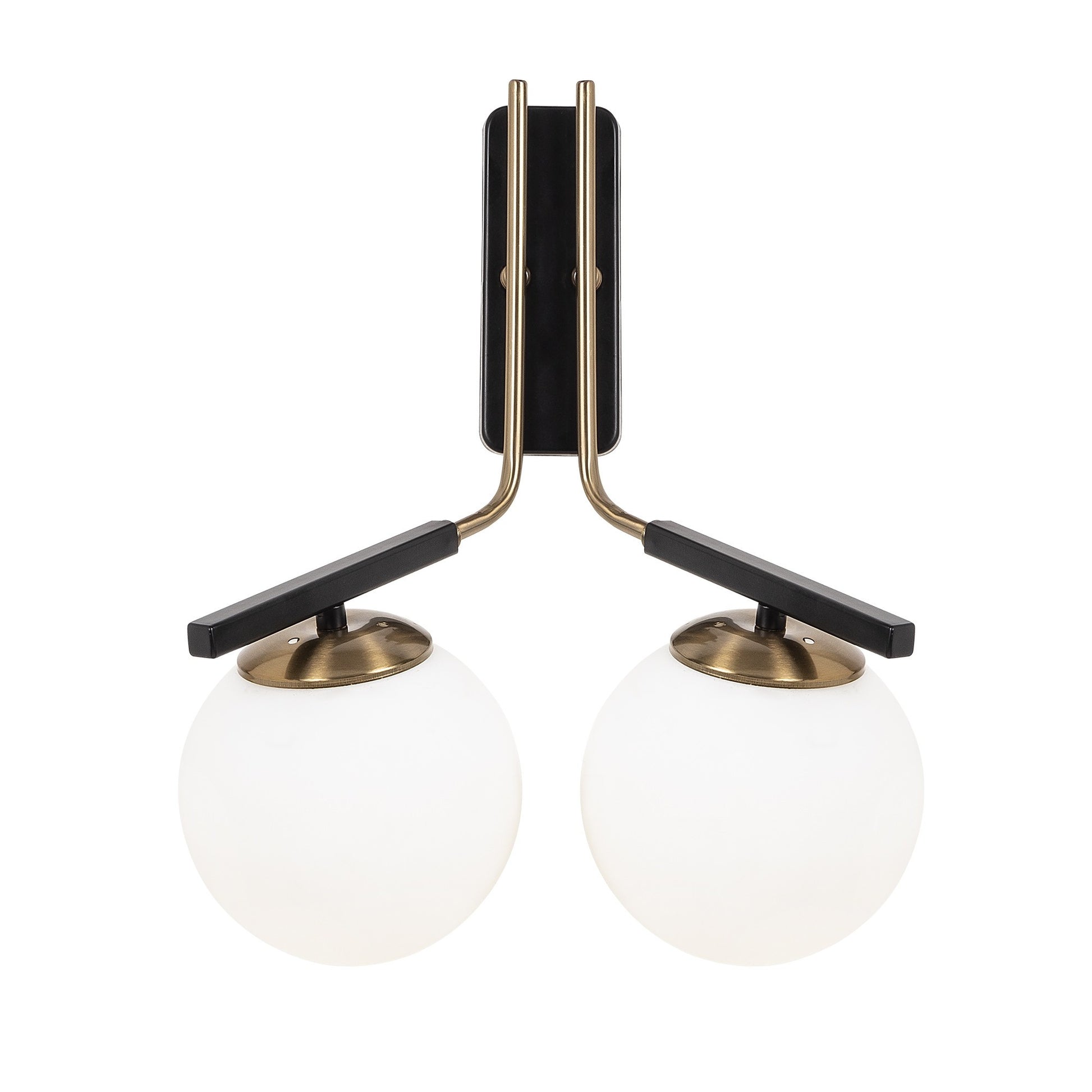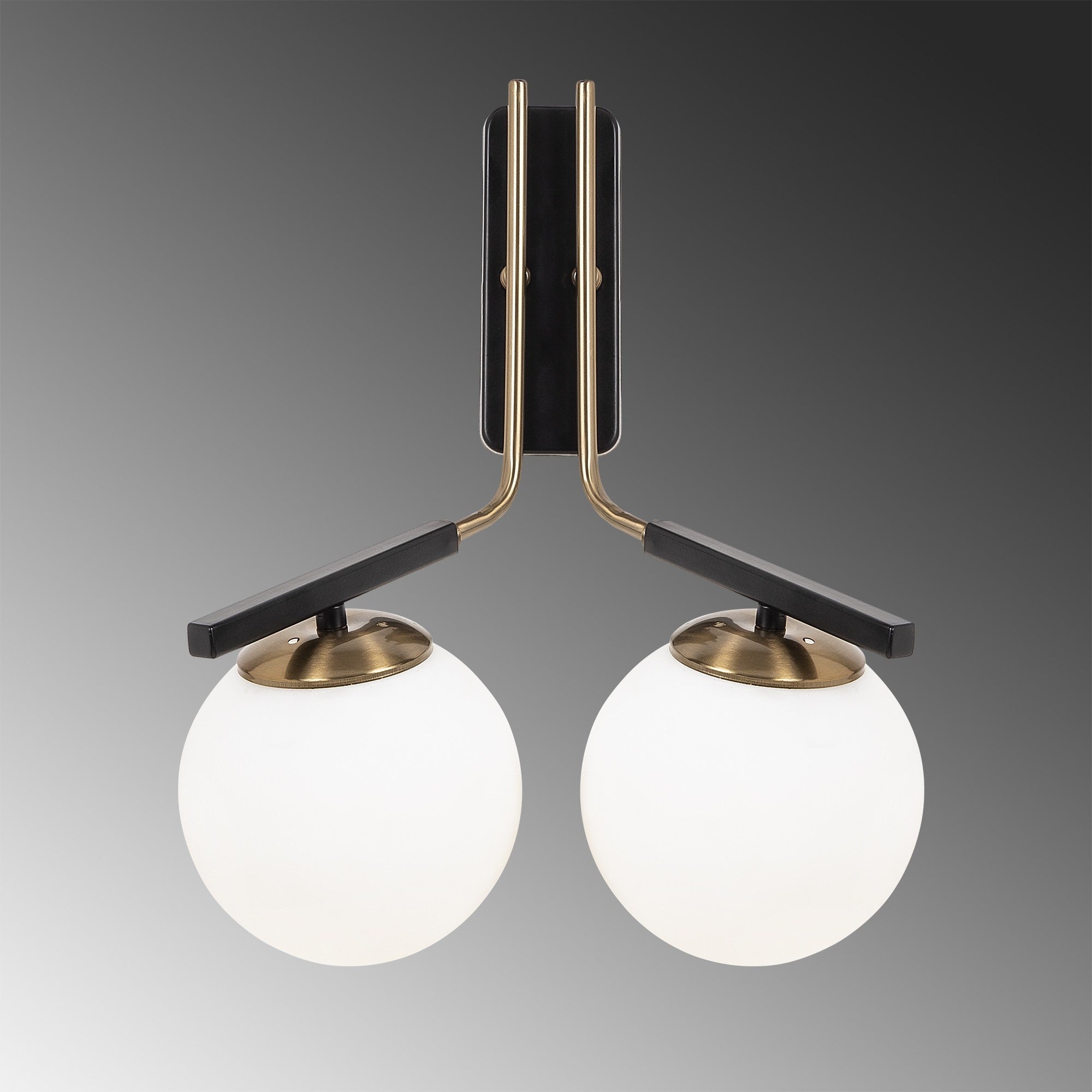 Candeeiro de Parede Escandinava, Dourada e Preta, 32 x 20 cm | Corpo em Ferro, Tampa em Vidro, Altura: 40 cm | 2 Soquetes E27, IP20 | Iluminação Elegante para Espaços Modernos