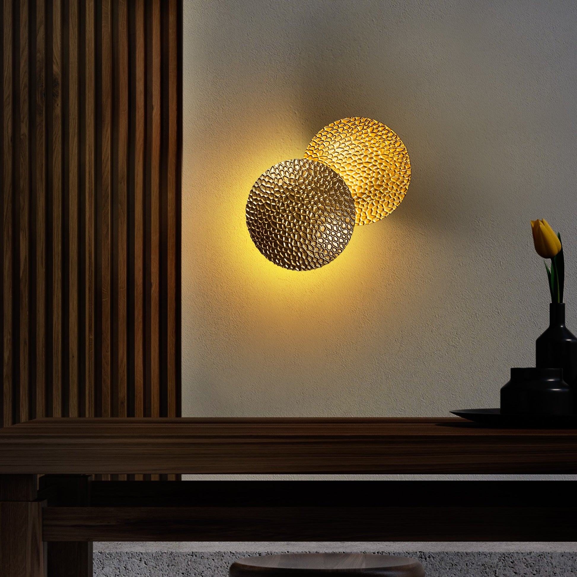 A cor dourada deste candeeiro de parede dá imediatamente um toque de opulência e luxo ao ambiente que o rodeia. Quer o coloque na sua sala de estar, no quarto ou no corredor, criará um ambiente acolhedor e convidativo que deixará uma impressão duradoura nos seus convidados.
