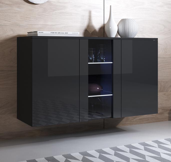 Aparador elegante e moderno, com acabamento brilhante. Ideal para organizar utensílios e decorar o seu espaço. Inclui luz LED, sistema pushclick e instruções de montagem.