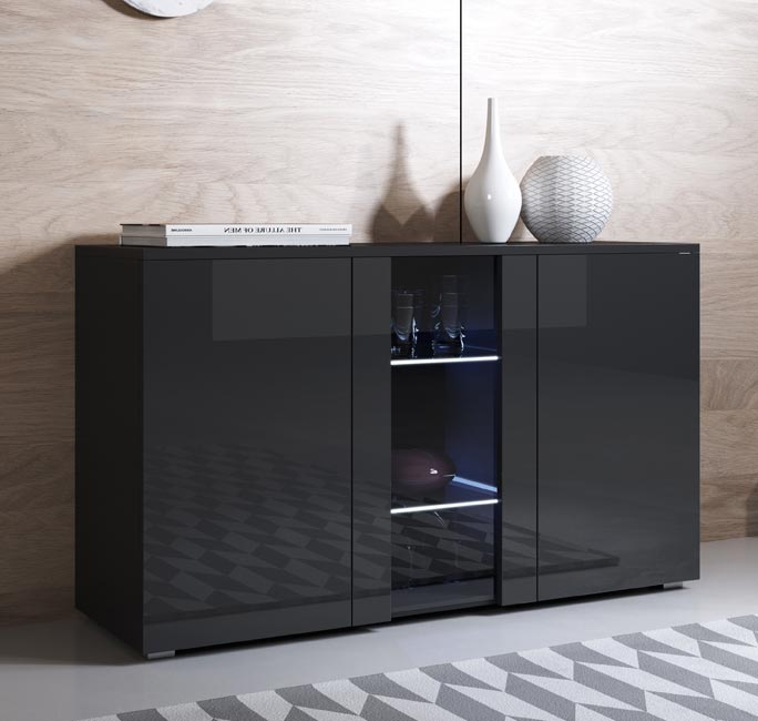 Aparador Leiko A1 – 120x72cm – preto – melamina e vidro