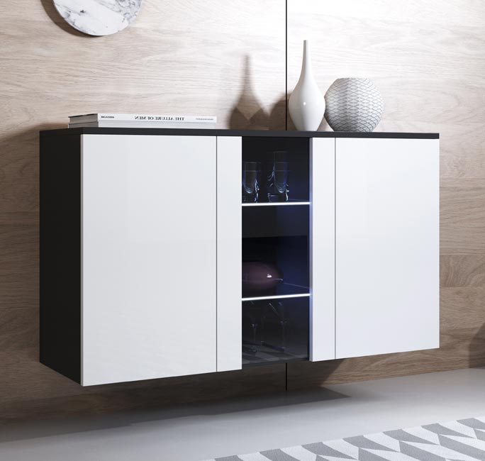 Aparador – 120x70cm – Preto e Branco – Melamina e Metacrilato