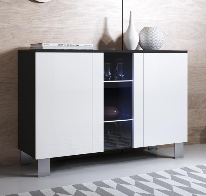 Aparador – 120x82cm – Preto e Branco – Melamina e Metacrilato