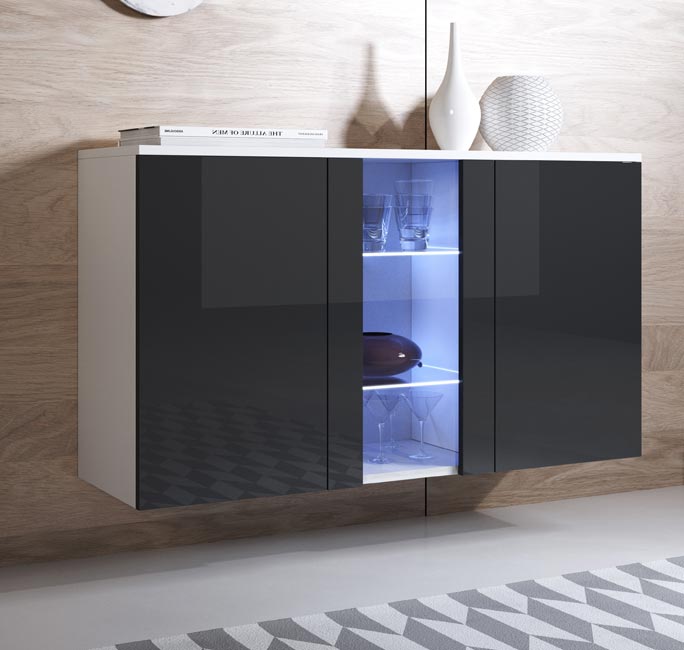 Aparador de design elegante e moderno, com acabamento brilhante que se adapta à decoração da tua casa. Espaço amplo para organizares utensílios e decoração.