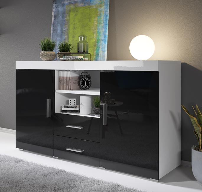Aparador de Design Moderno – 140 cm x 82 cm x 40 cm – Branco e Preto