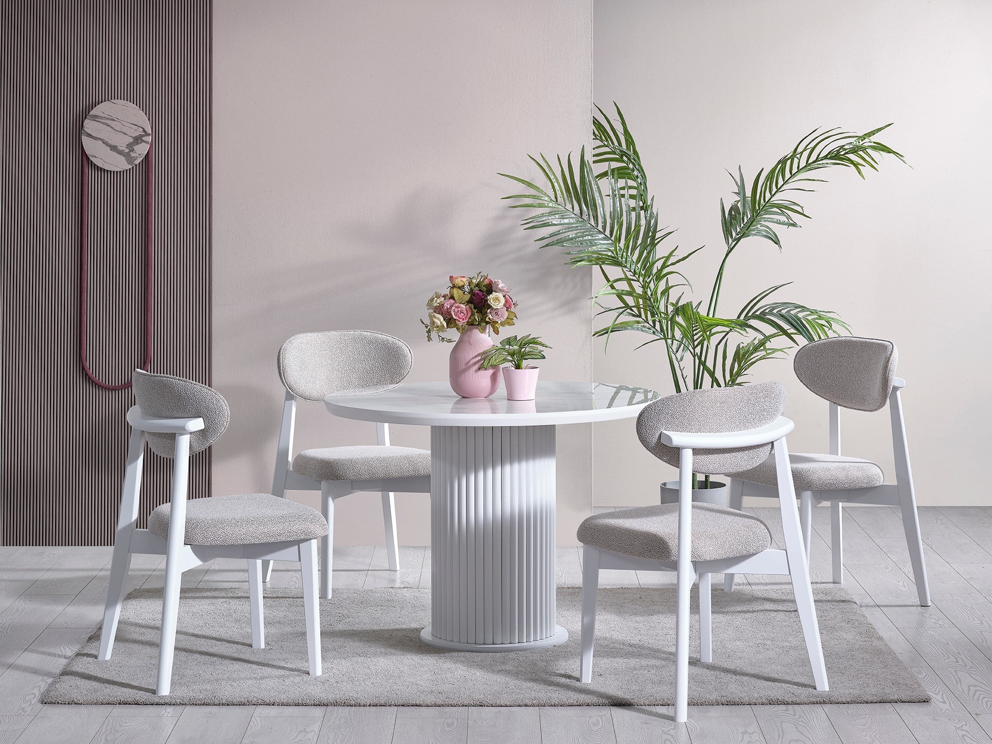 Transforme a sua sala de jantar num espaço de elegância e sofisticação com a nossa deslumbrante mesa de jantar. Fabricada em 100% mdf com um tampo revestido a acrílico, esta mesa exala luxo e estilo. A cor branca elegante acrescenta um toque de modernidade a qualquer decoração, tornando-a na peça central perfeita para a sua casa.