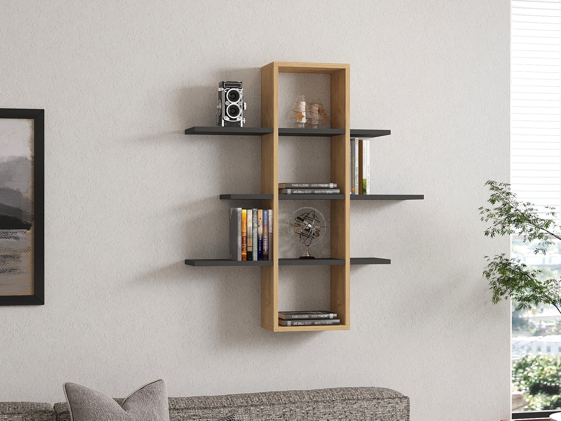 Prateleira de Parede – 96 x 101 x 19,6 cm – Safira e Antracite – Painel de Partículas com Melamina