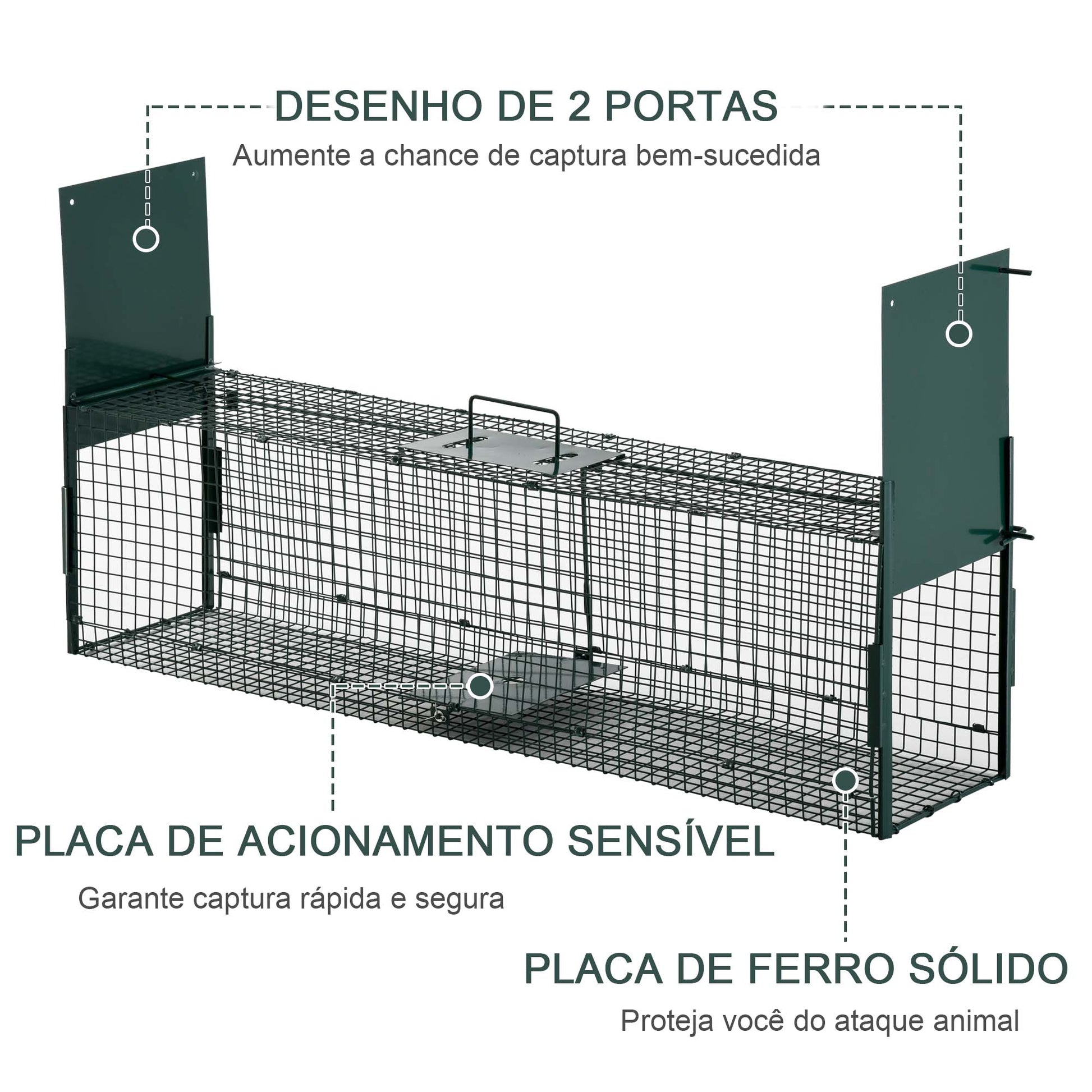 Armadilha com 2 Portas para Animais Vivos - 100x25x28cm - Verde Escuro